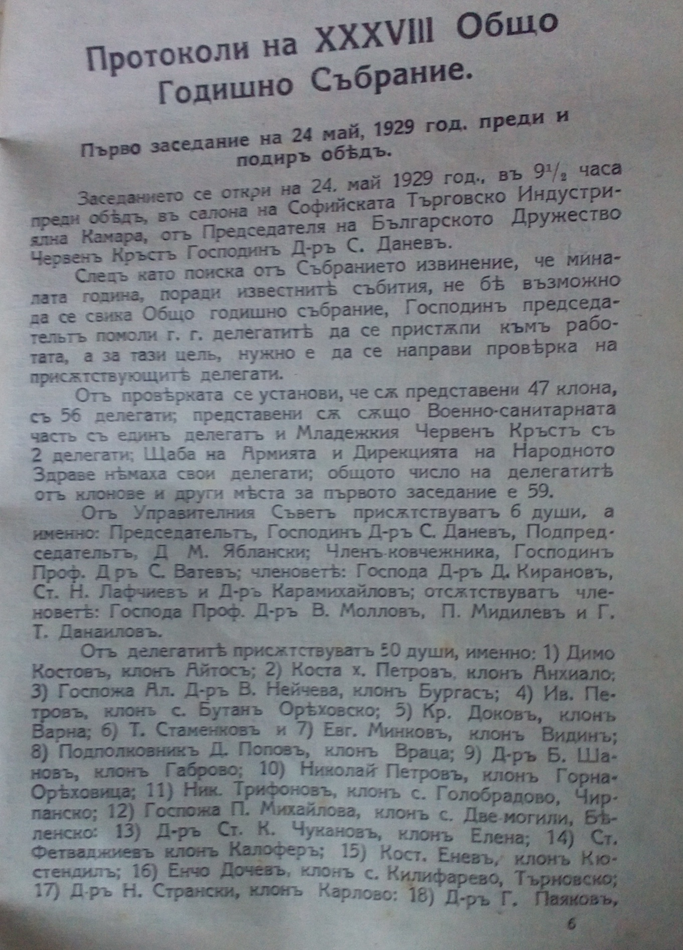 Председател: Подполковник Генов; Секретар-касиер: Д-р Тр.Генов; Членове:1. Ив.Георгиев; 2. Д-р Д.Шекерджиев; 3. Александър М. Герасков; 4. Борис Димитров; 5. Олга Герова