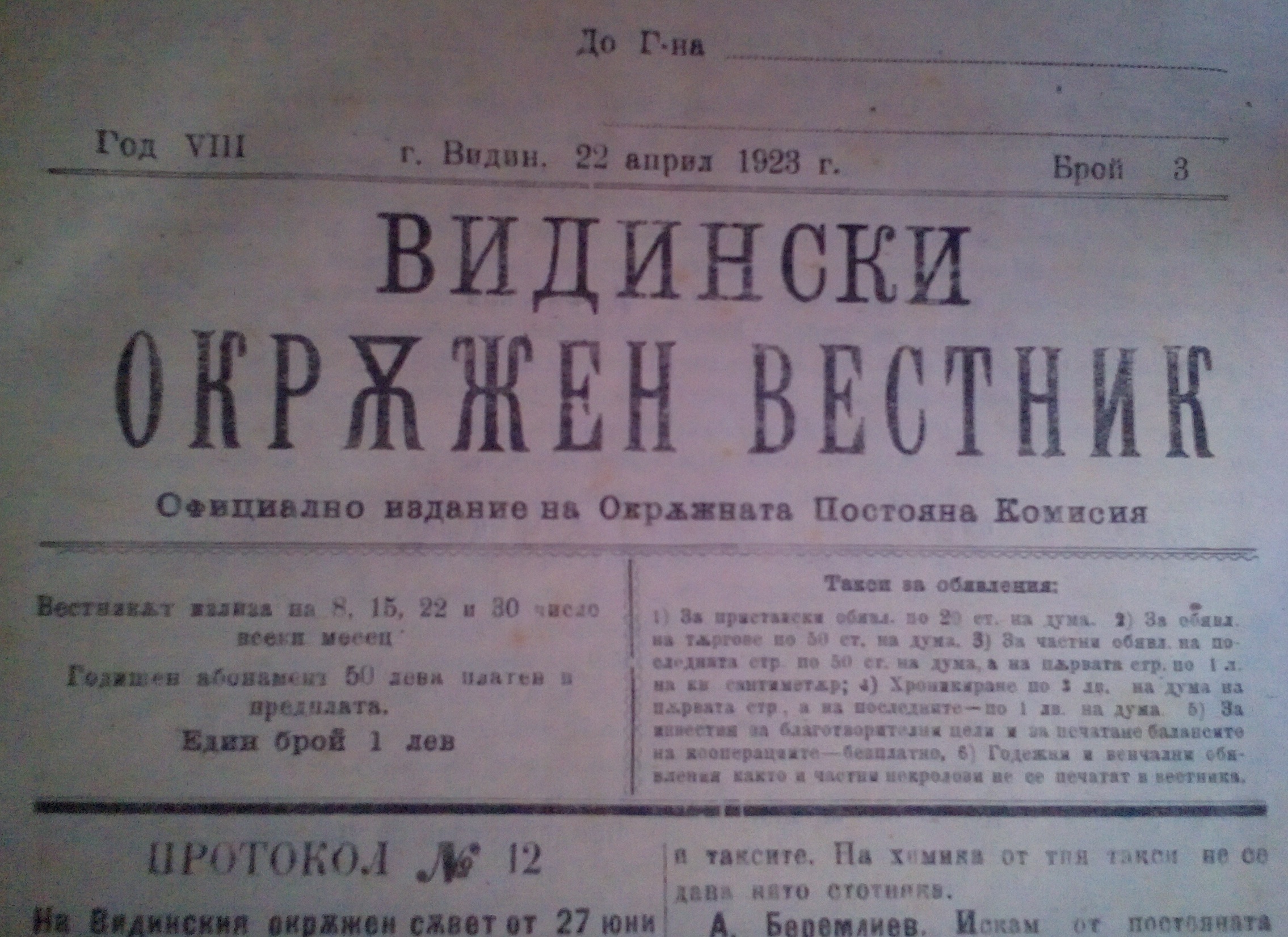 Видински Окръжен Вестник брой 3 / 04.22.1922 г. ; Официално издание на Окръжната Постоянна Комисия.