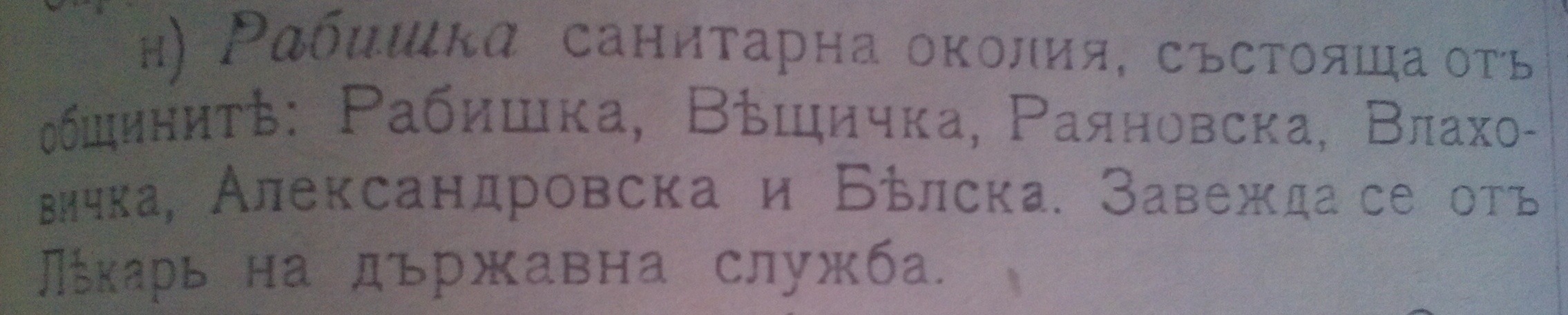 Рабишката Санитарна околия ,