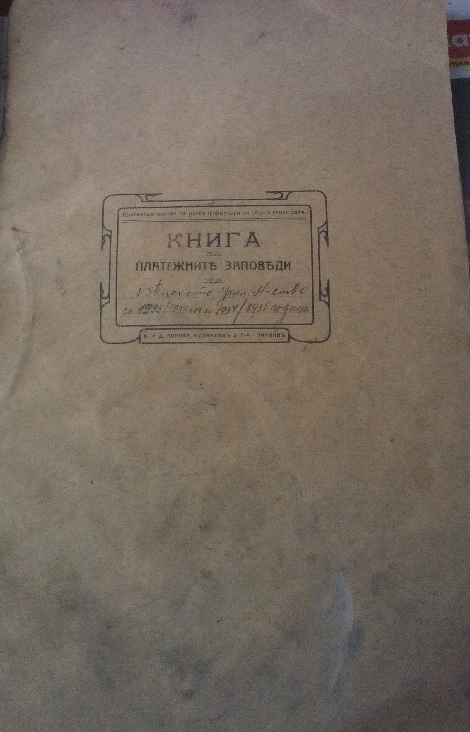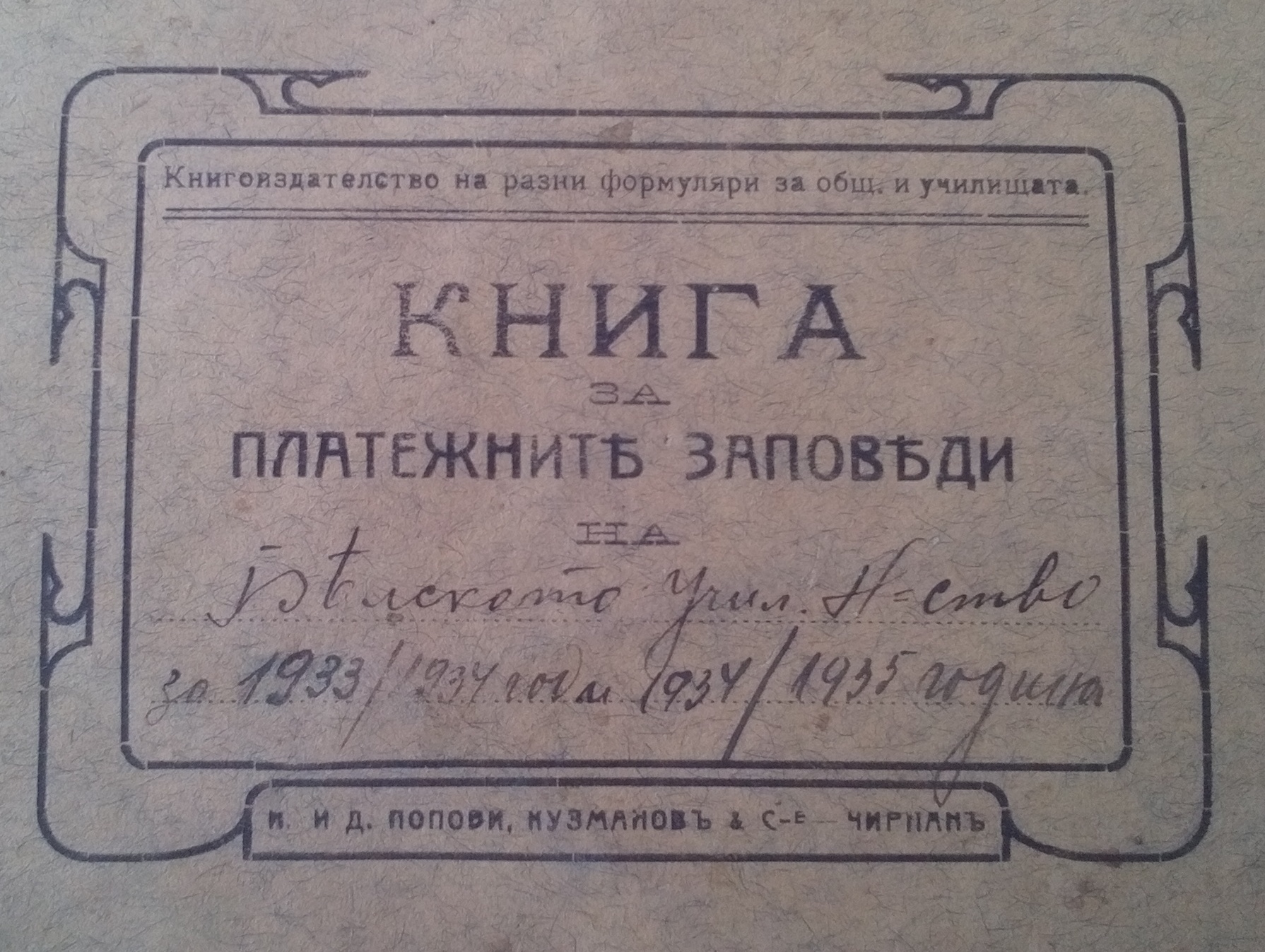 КНИГА за Платежните Заповеди на Белското Училищно Настоятелство за 1933 и 1934 година ; 1934 и 1935 година.