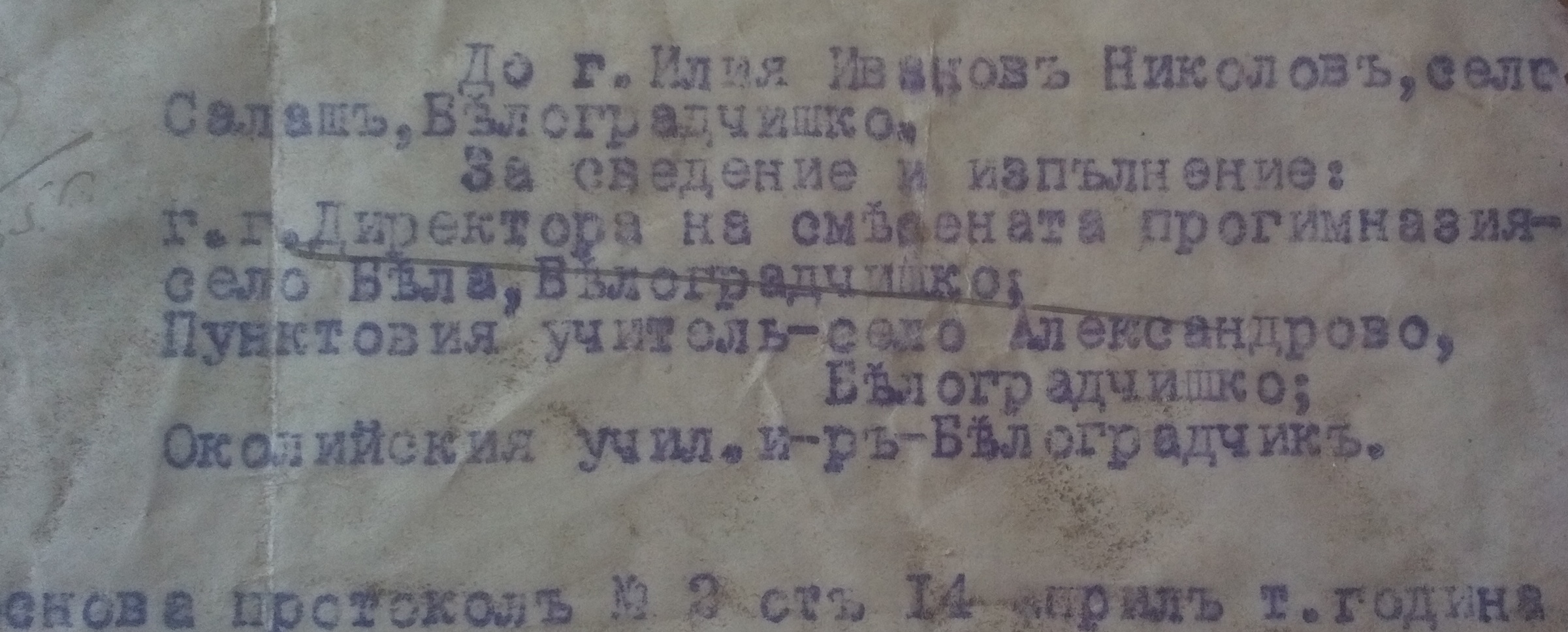 Въз основа на протокол N 3 / 14.0.1935 год. на околийската училищна комисия в гр.Белоградчик …….