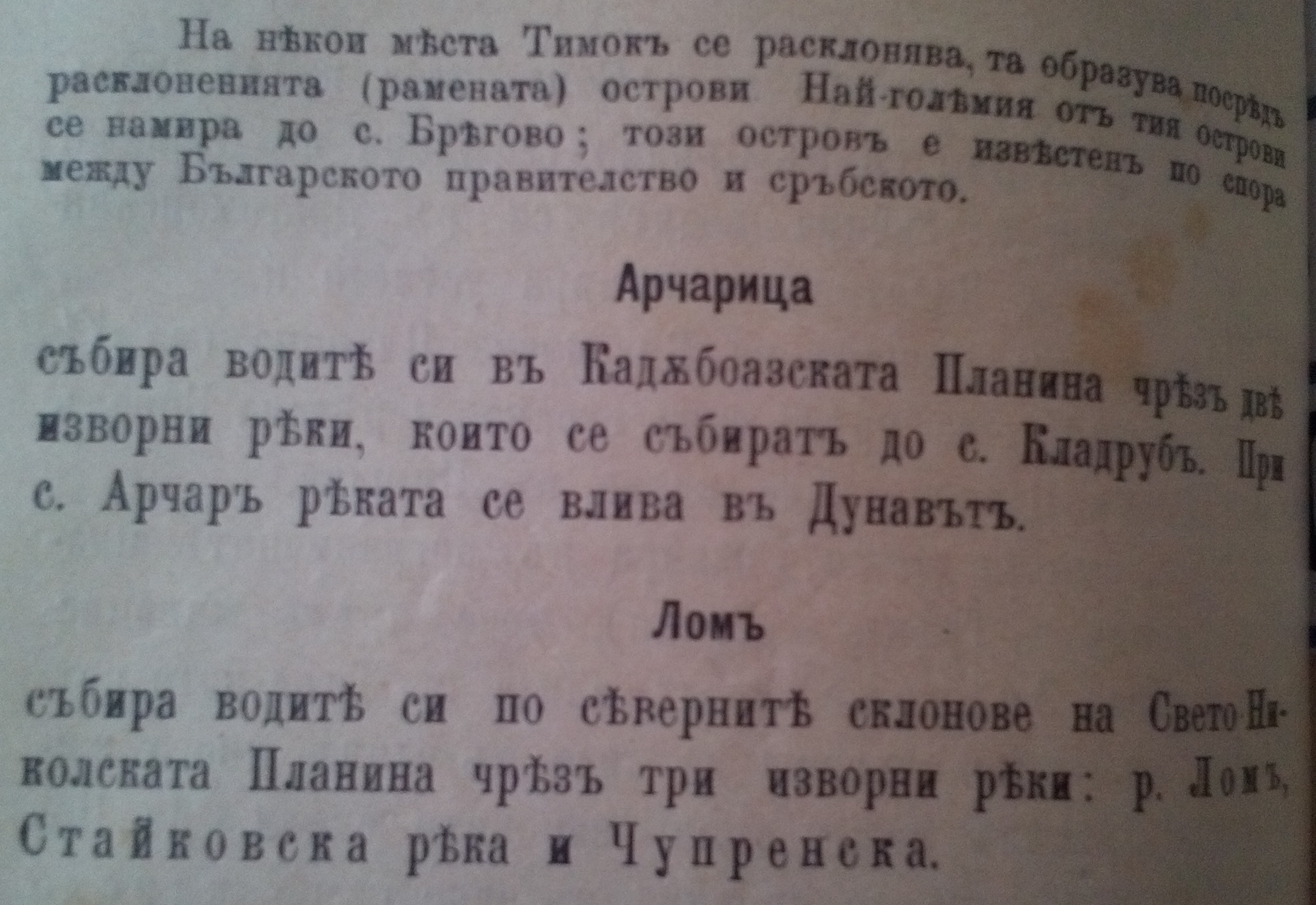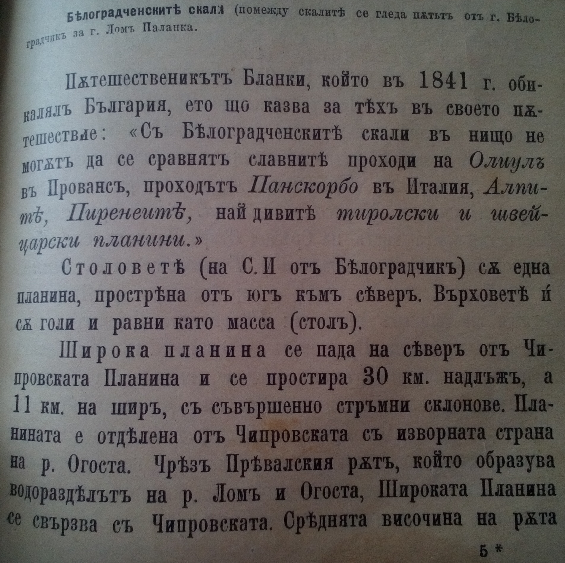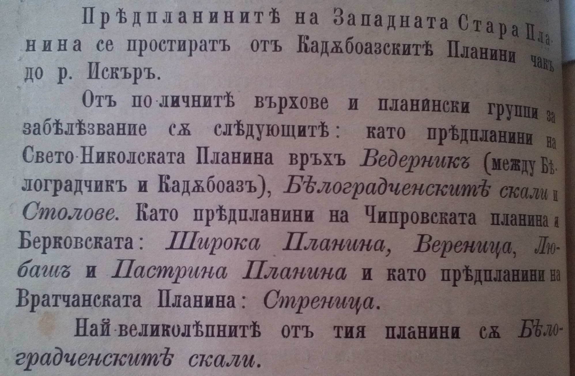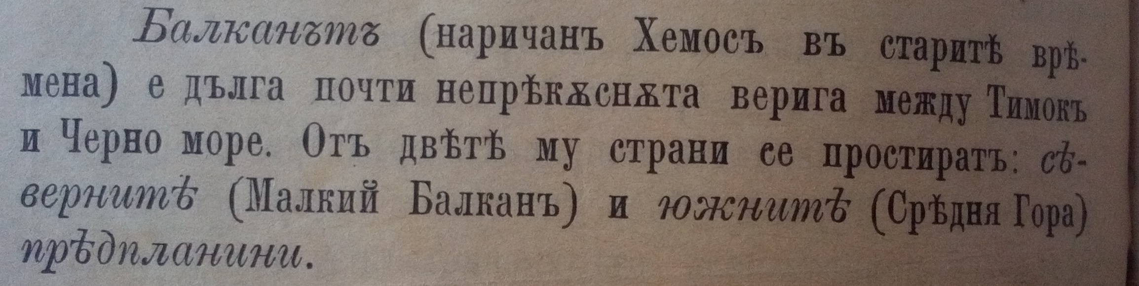 Балканът (наричан Хемус в старите времена) е дълга почти непрекъсната верига мегду Тимок и Черно море. Северните предпланини наричани Малкий Балкан……