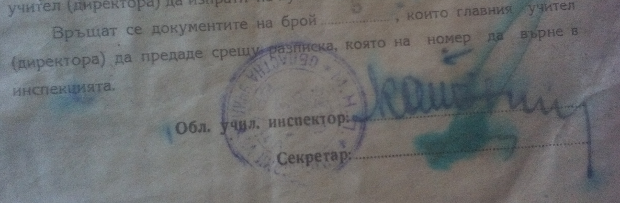 Печат: М.Н.П Областна Училищна Инспекцияю