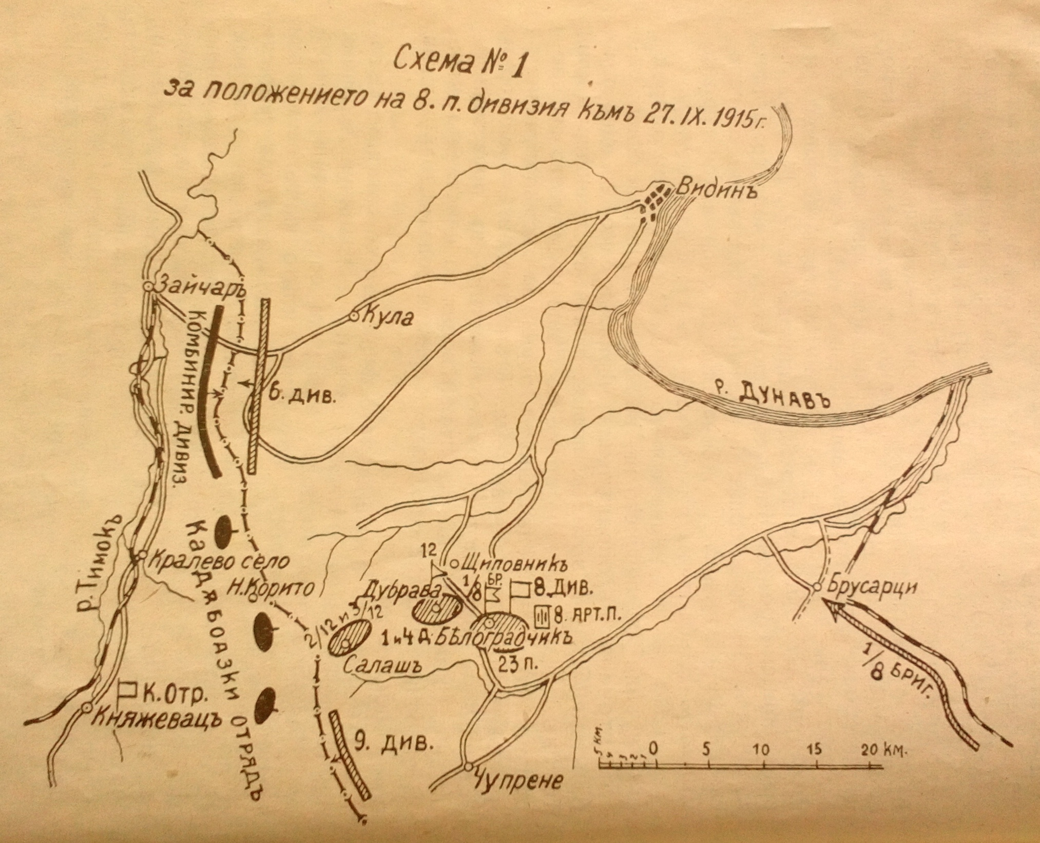 Осма пехотна Тунджанска дивизия срещу гр.Княжевац а щаба и в гр.Белоградчик.