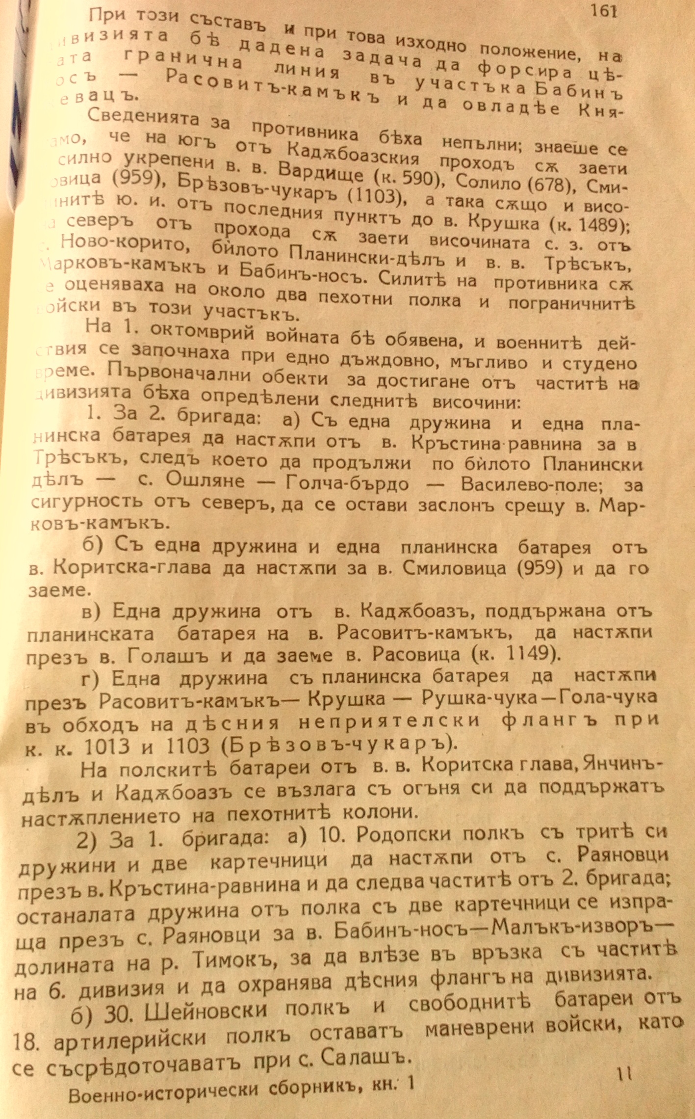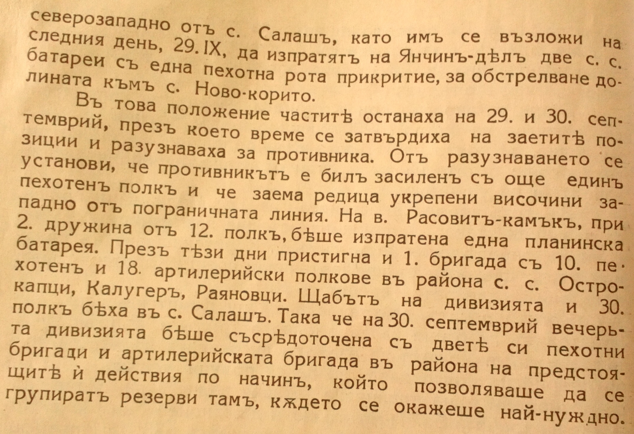 На 30.09.1915 г. Първа Бригада е съсредоточена в района на село Бела – Калугер – Орещец и Ружинци.