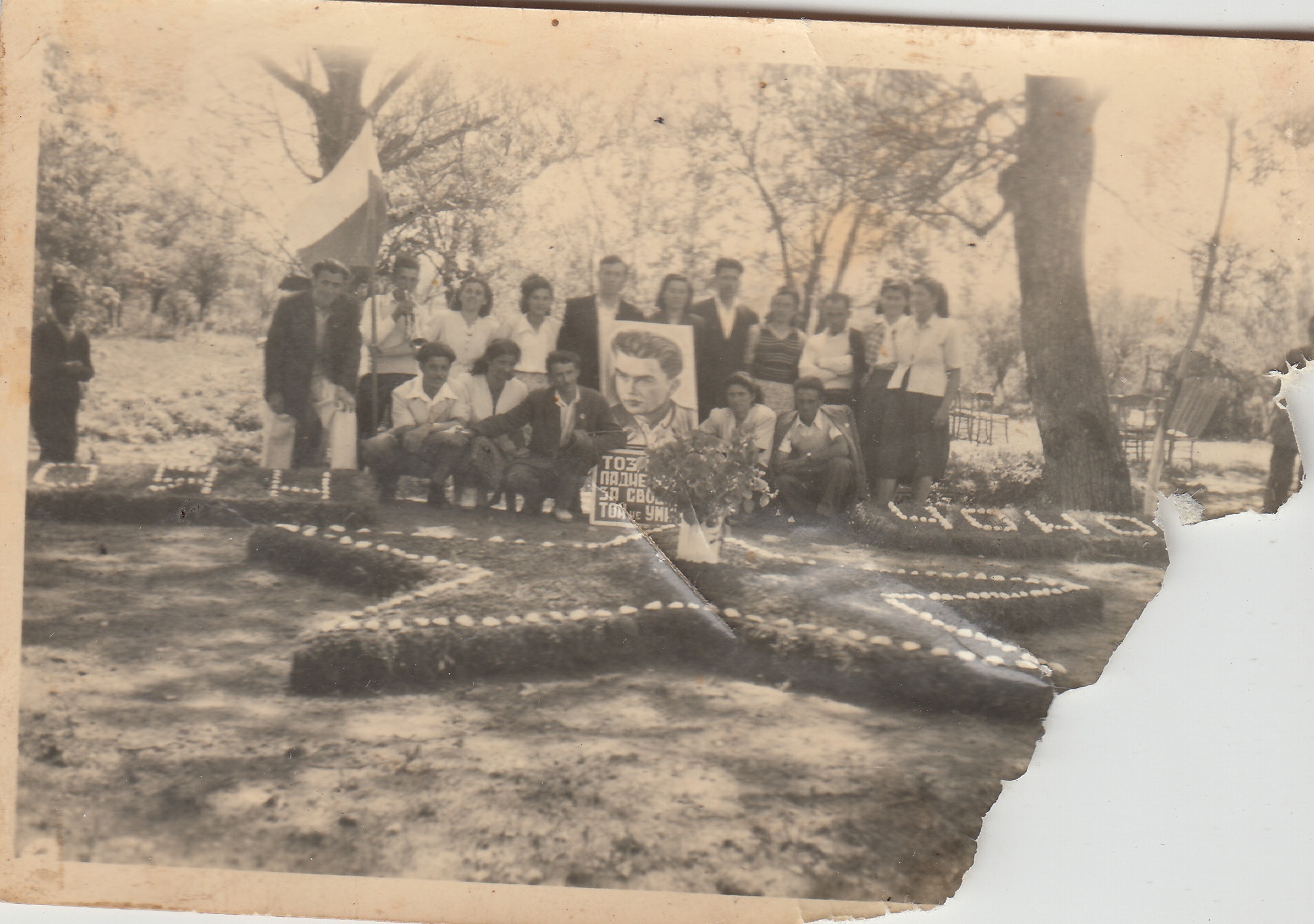 Пред петолъчката и със снимката на Боян Чонос.