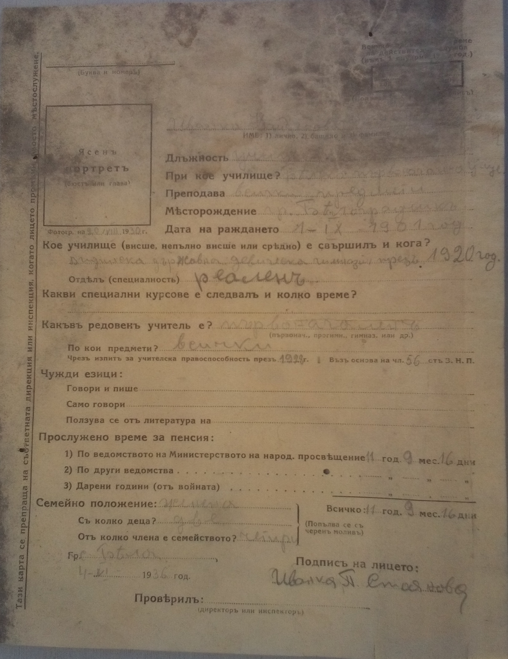 По кои предмети: Всички ; Чрез изпити за учителска правоспособност през 1922 година.