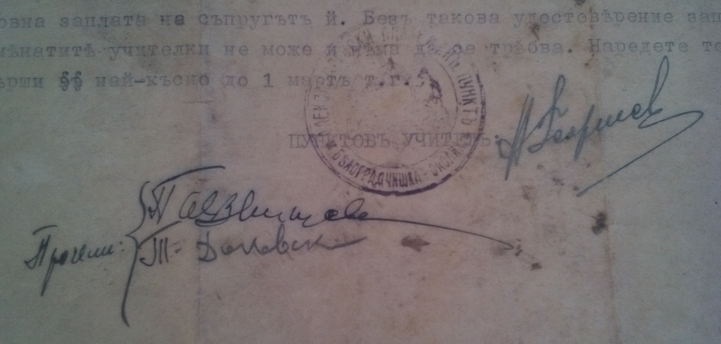 Печат и поспис пунктов учител с.Княз Александрово: / П / Георгиев