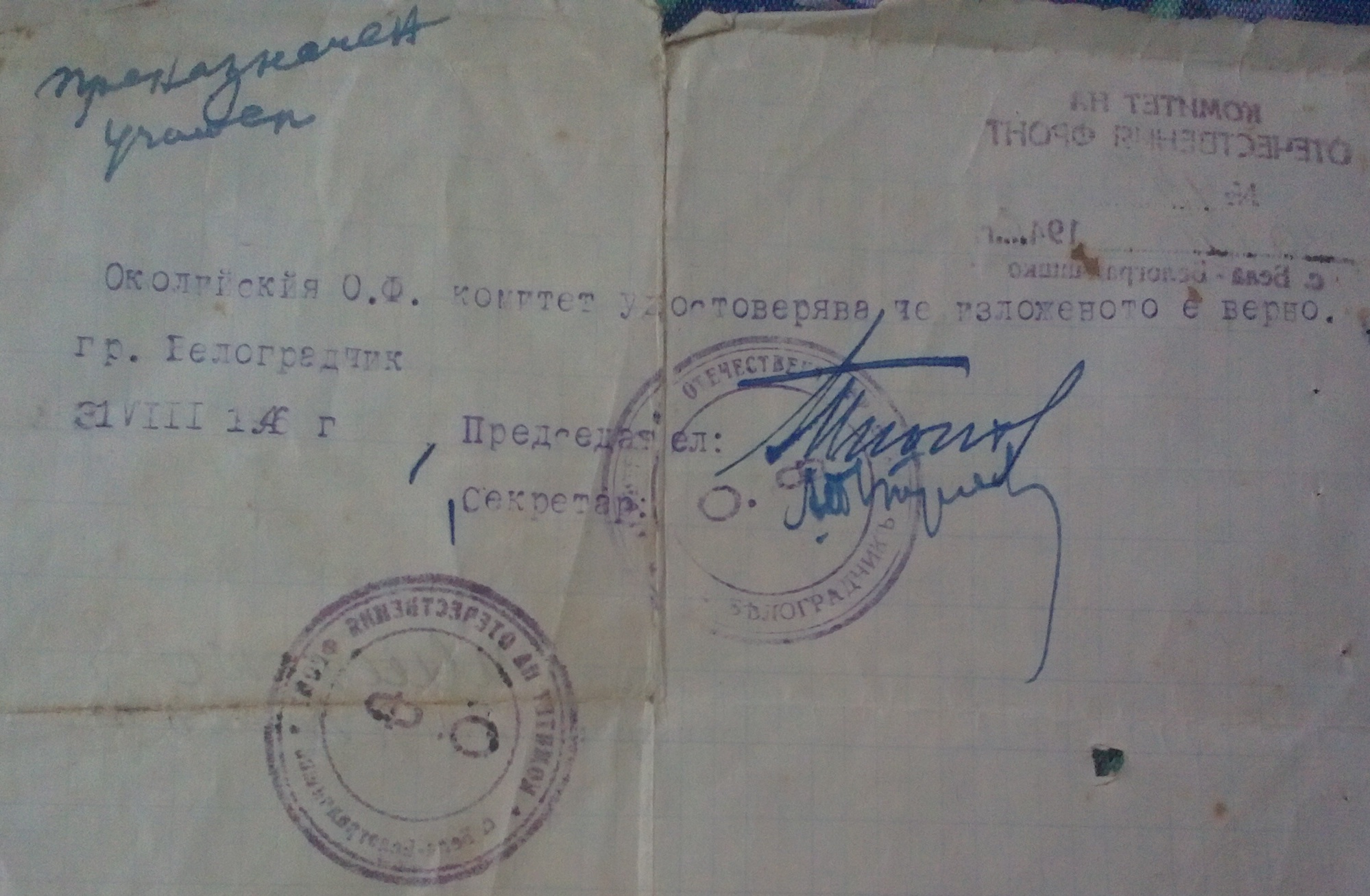 Околийски О.Ф. комитет гр.Белоградчик