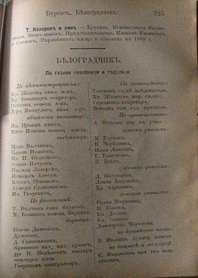 БЕЛОГРАДЧИК – по главни чиновници и търговци