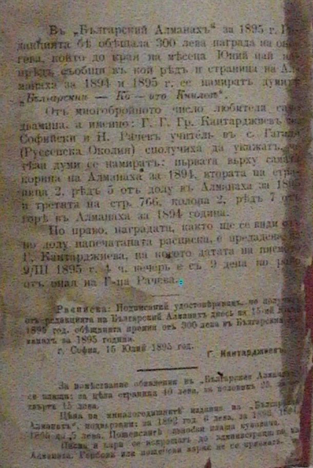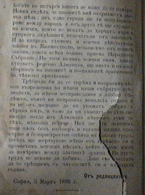 БЪЛГАРСКИ АЛМАНАХ ЗА 1896 година