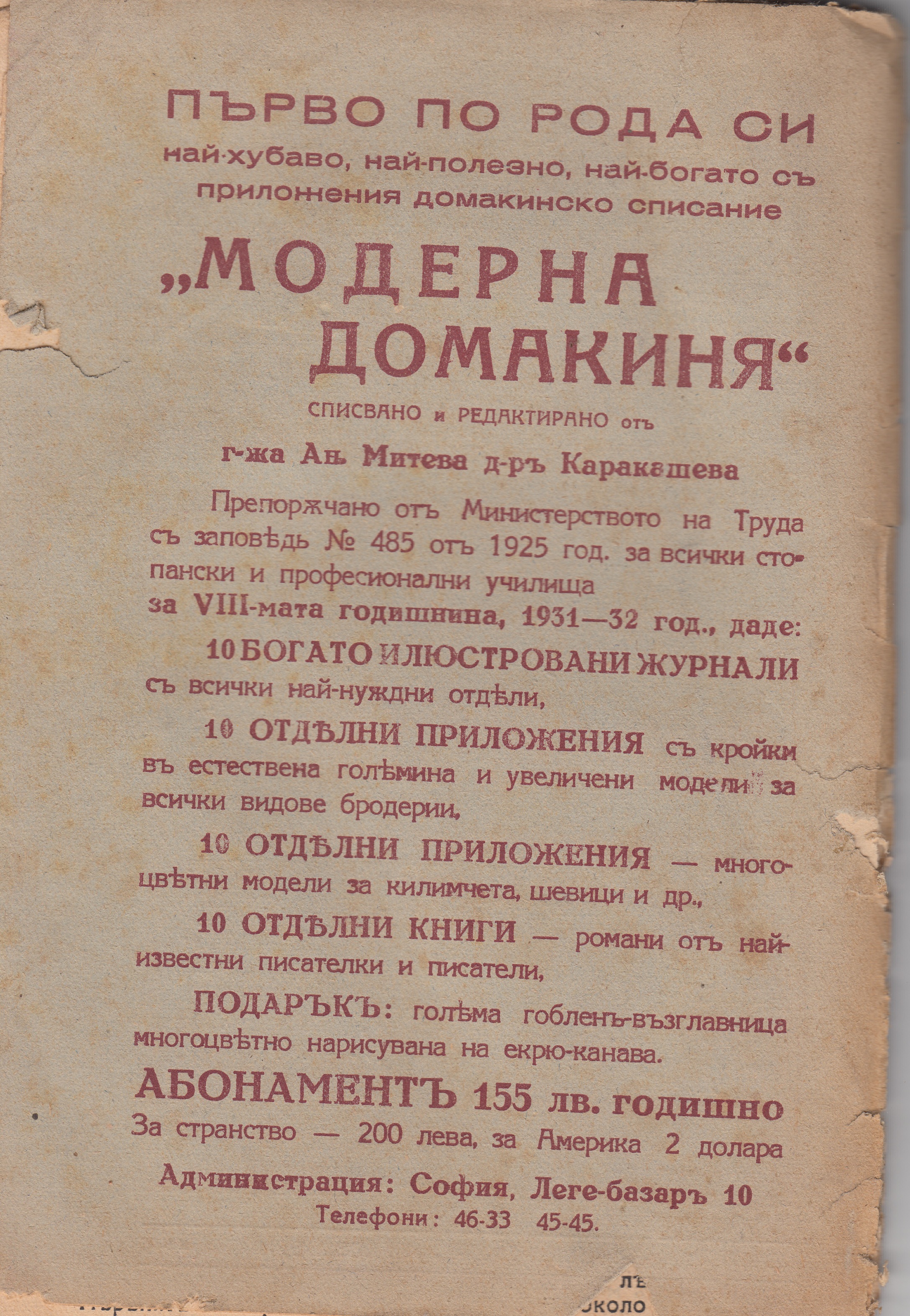 Нашите Планински и морски курорти и минерални бани ; Списание „МОДЕРНА ДОМАКИНЯ“ 1931 година.