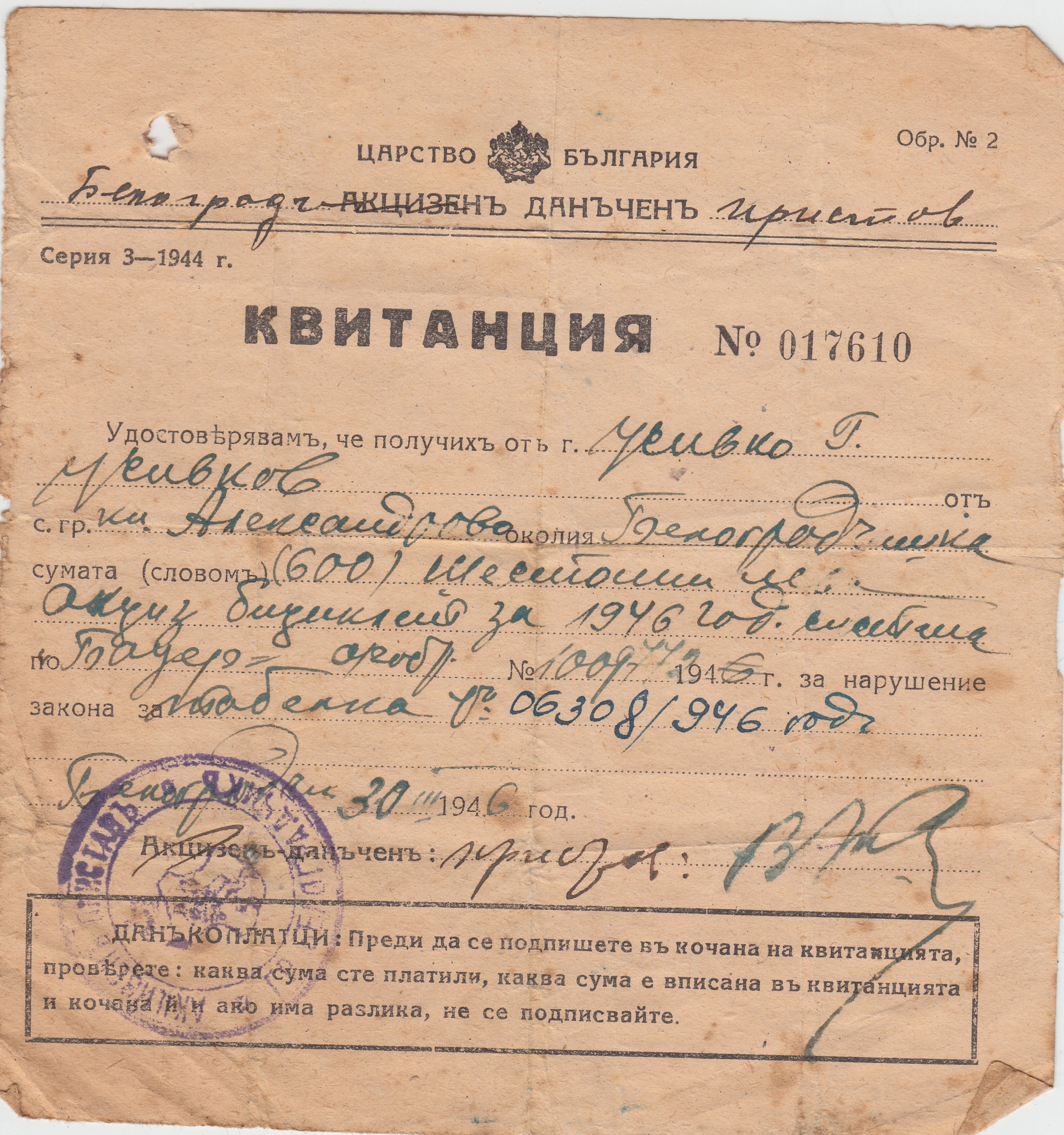 Още две бележки 1946 година.