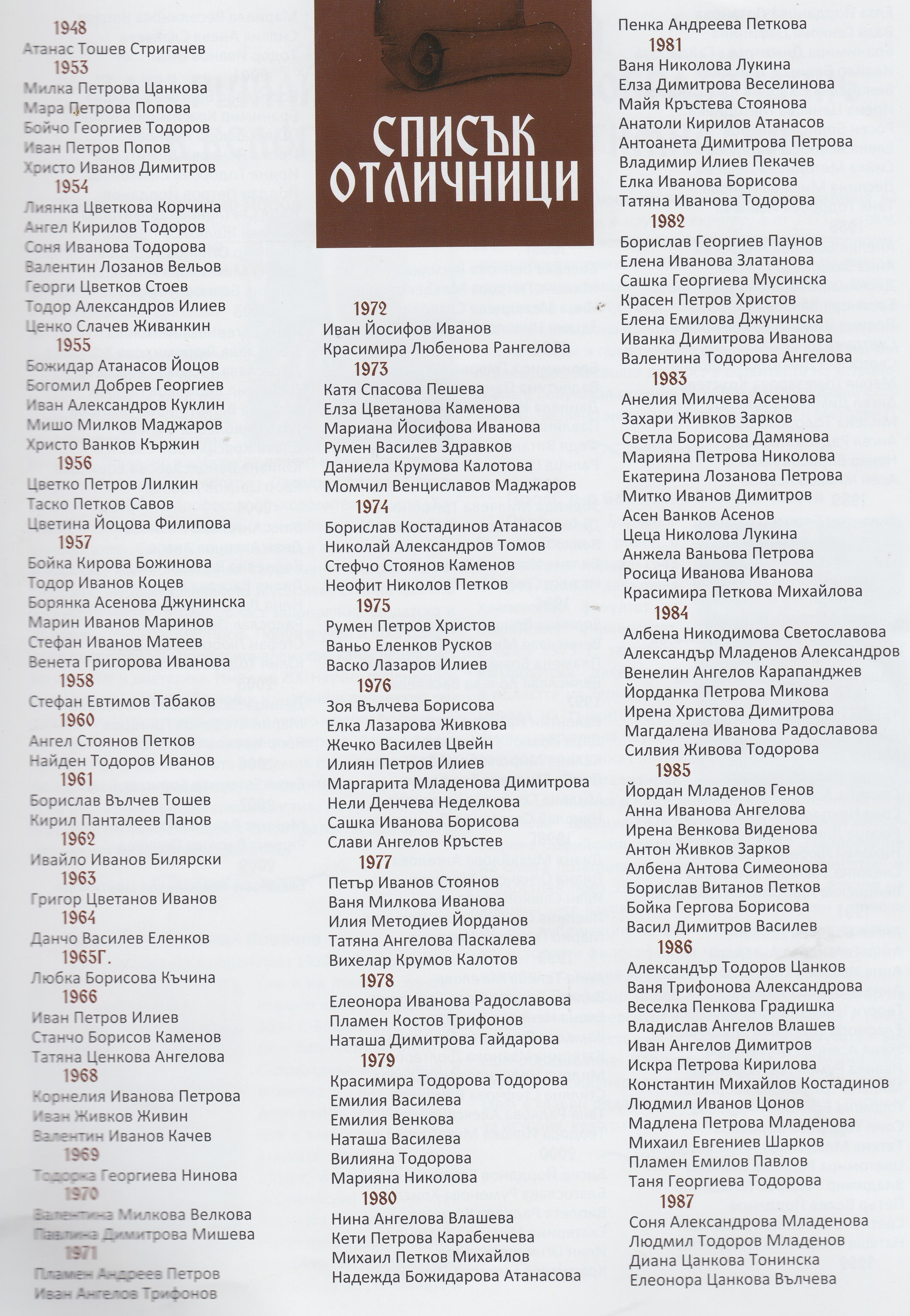 СПИСЪК НА ОТЛИЧНИЦИТЕ