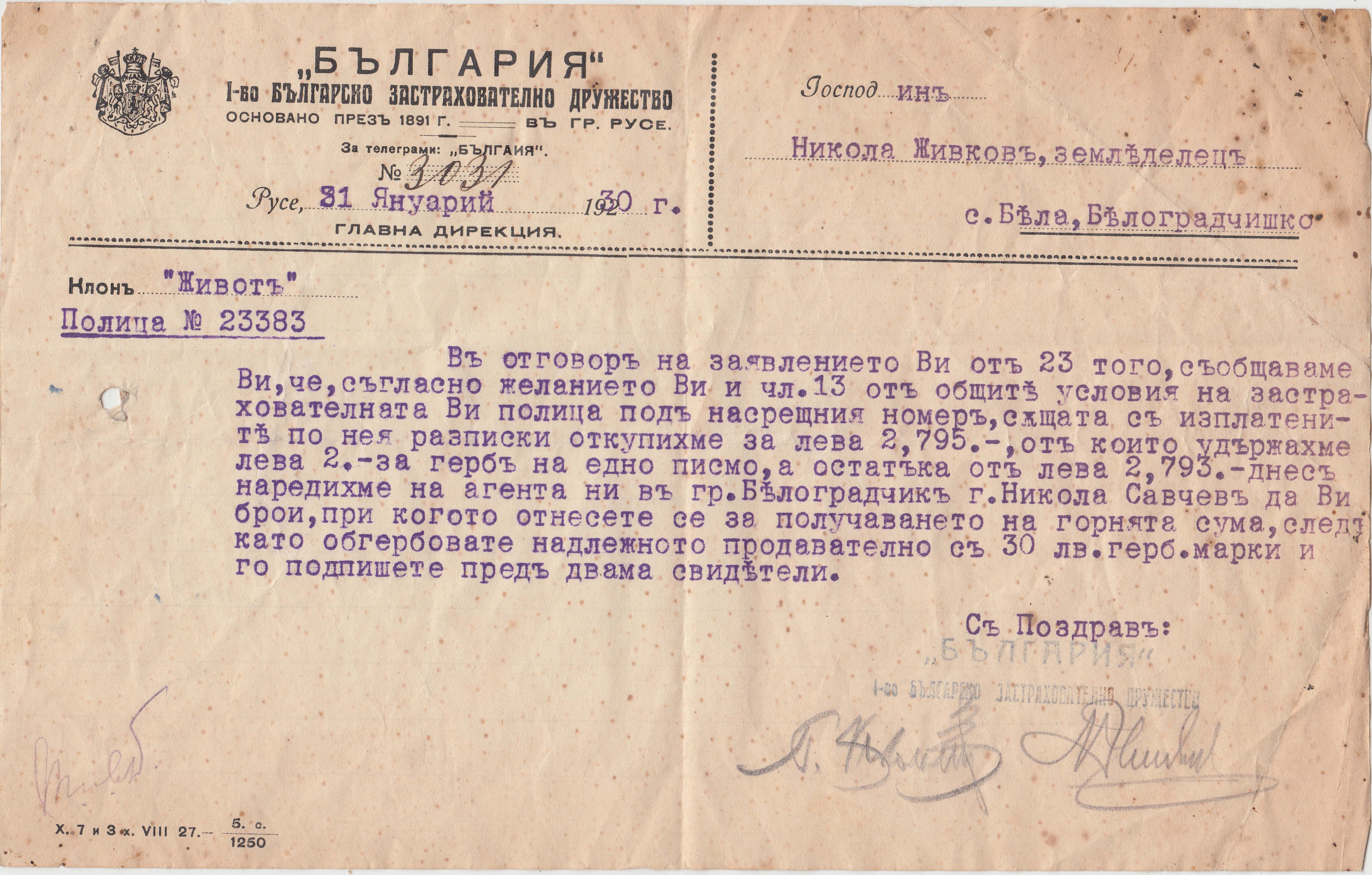 „БЪЛГАРИЯ “ 1-во Българско Застрахователно Дружество