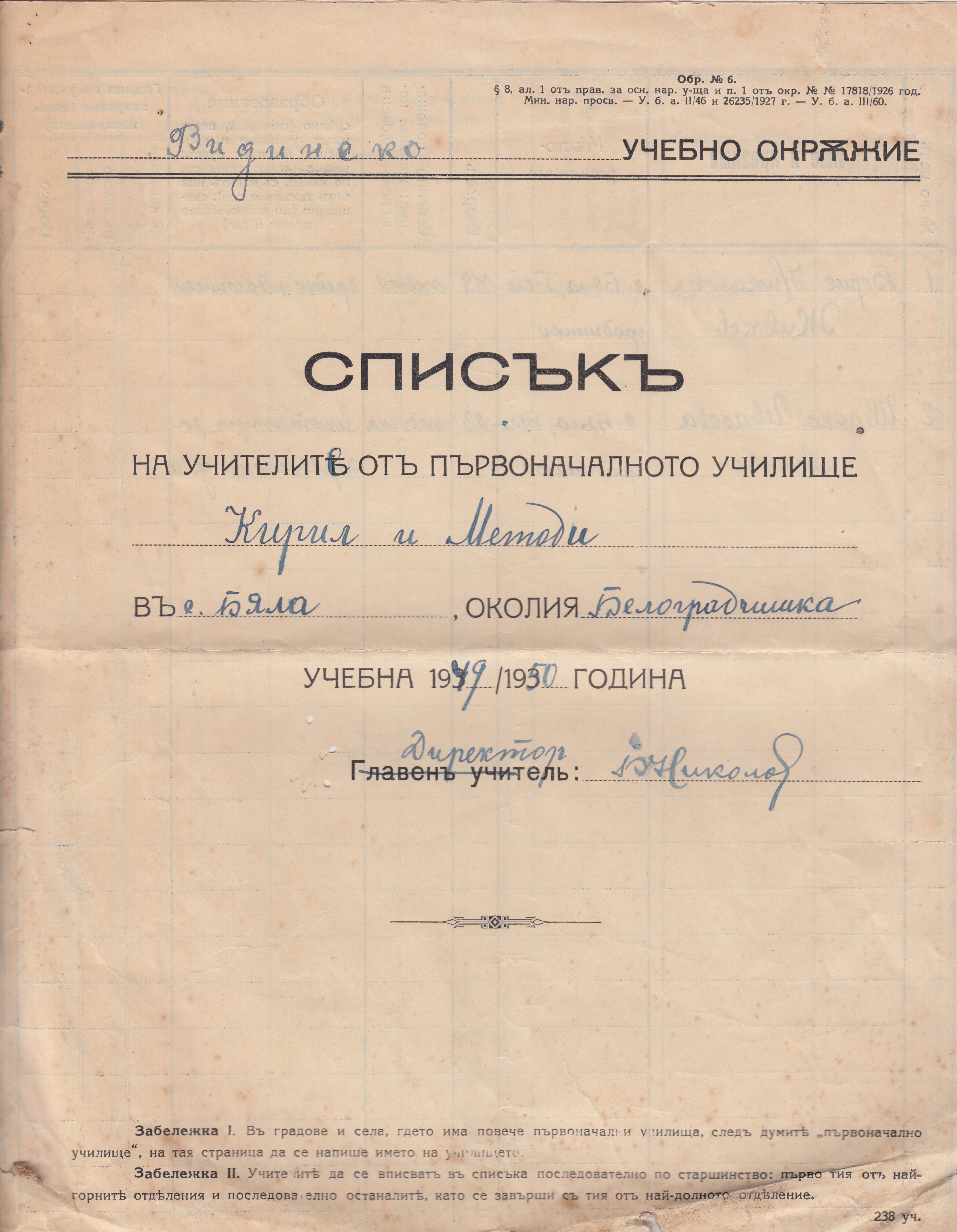 Село Бела , Околия Белоградчишка Училище „Кирил и Метиди“ учебна 1949/50 година.