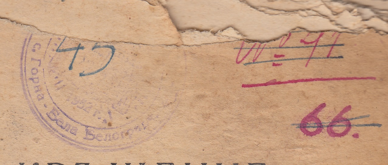 Печат: Читалище „ПРОСВЕТА“ с.Горна Бела – Белоградчишко – 1952г.