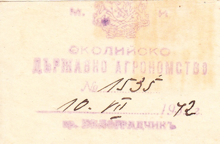 Печат: Околийско Държавно Агрономство *Белоградчик*