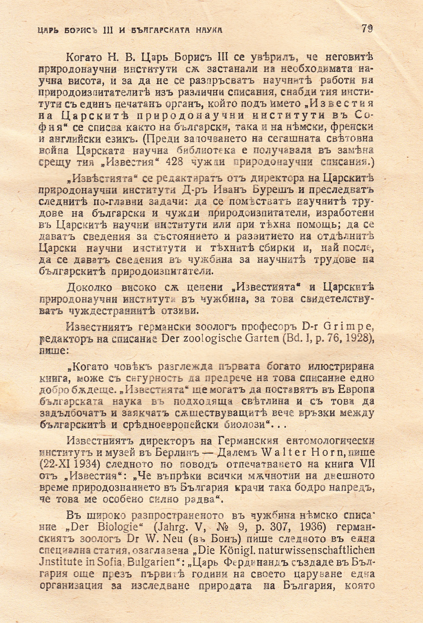 Н.В.Цар Борис III и Българската наука.