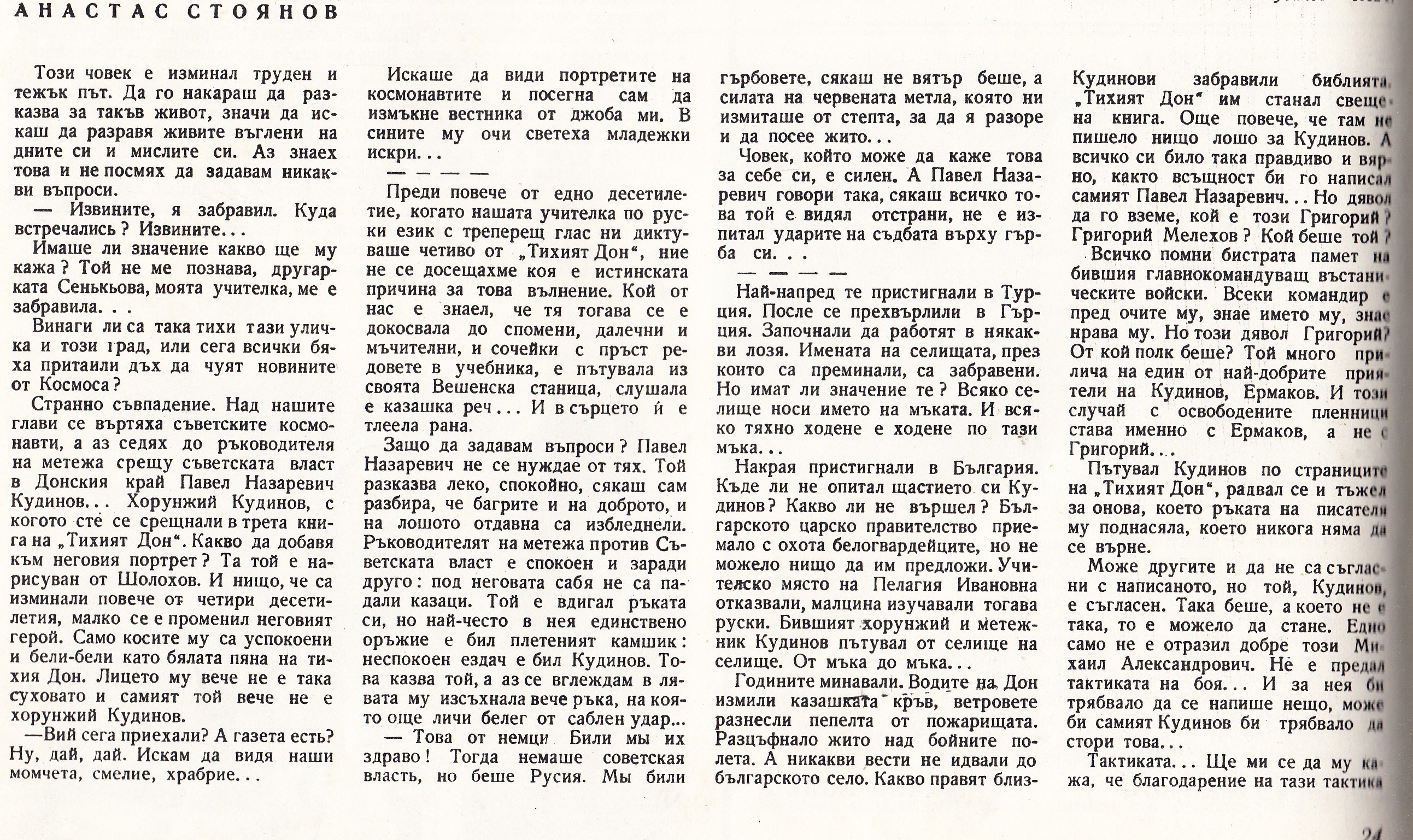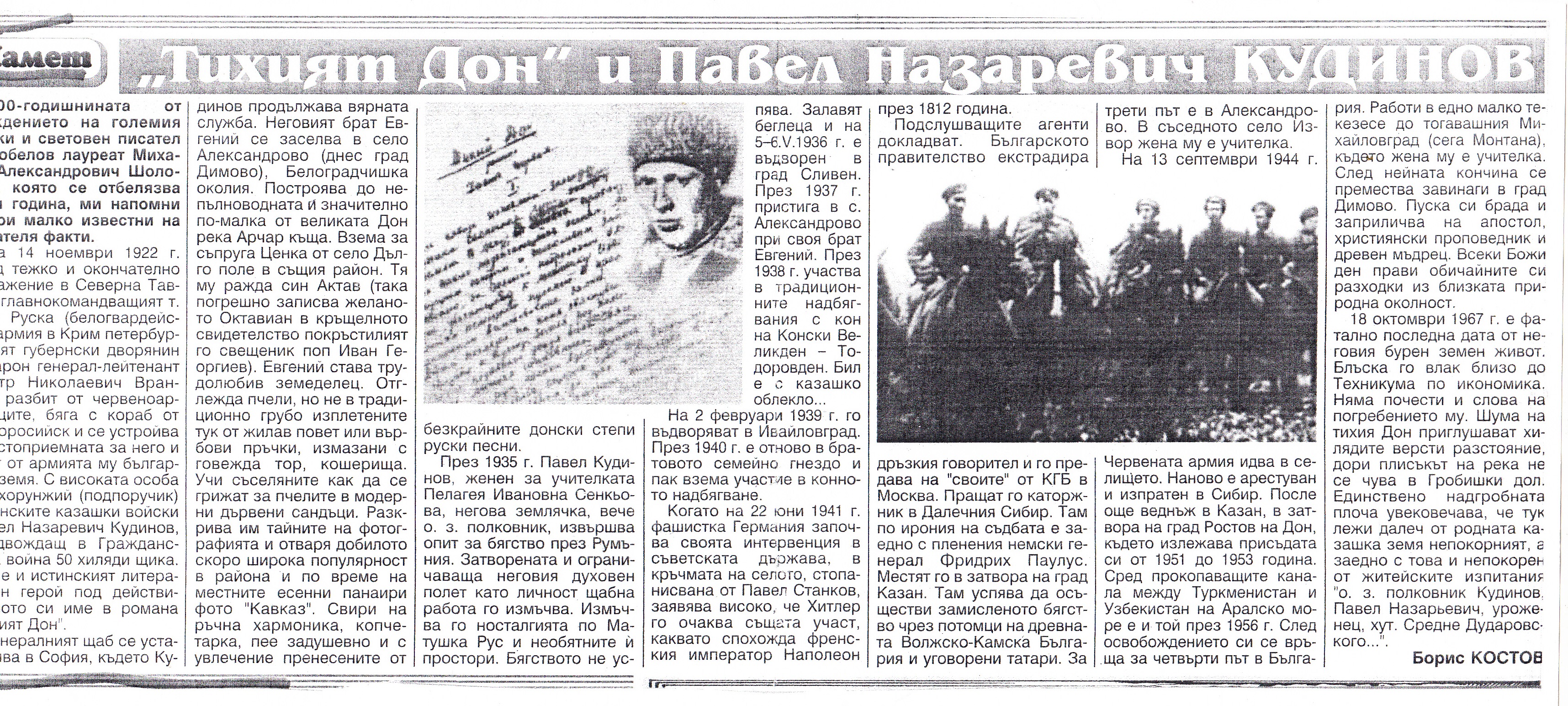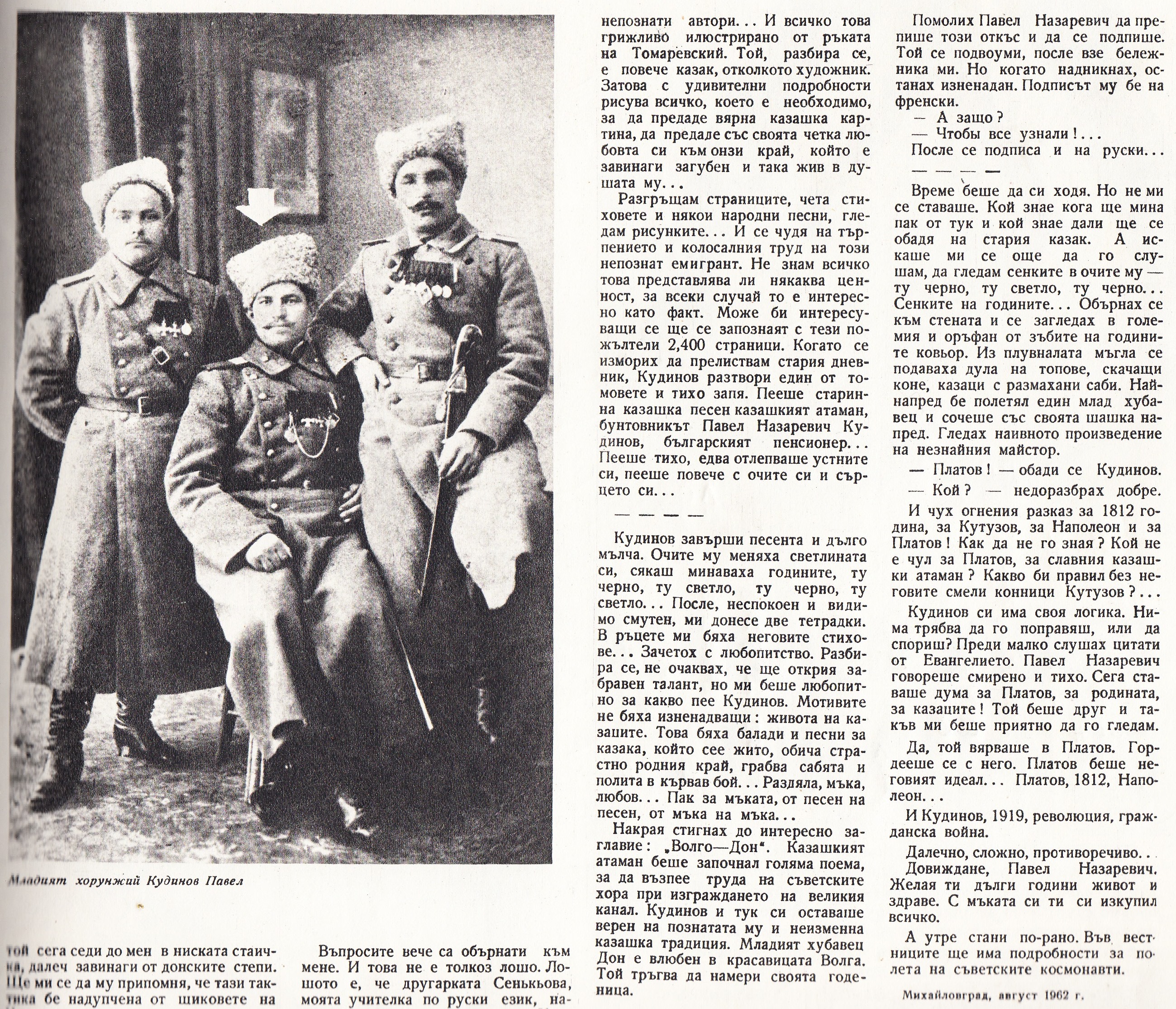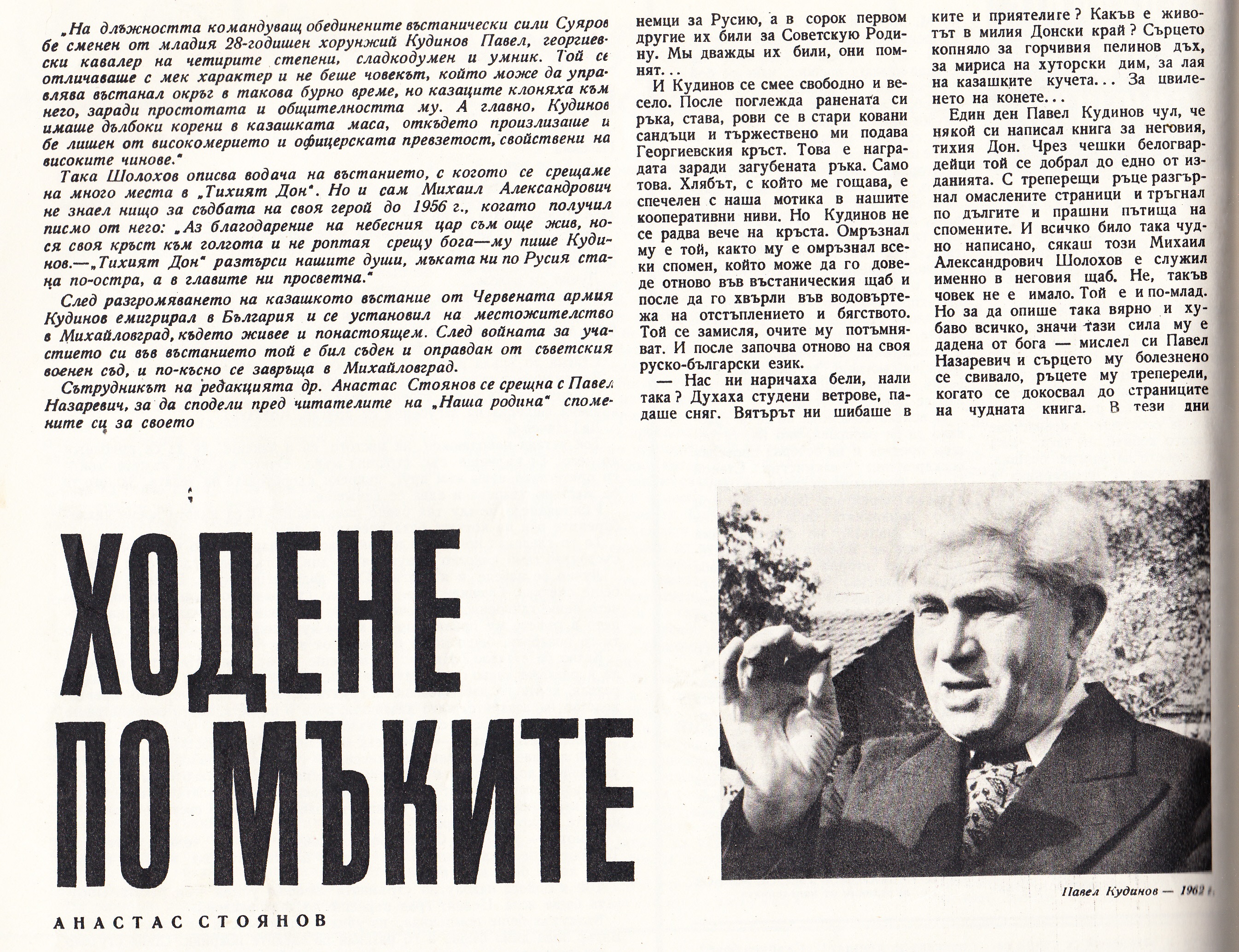 Едно малко известна среща с Павел Кудинов от 1962 година, отпечатана в списание „Наша Родина“ .