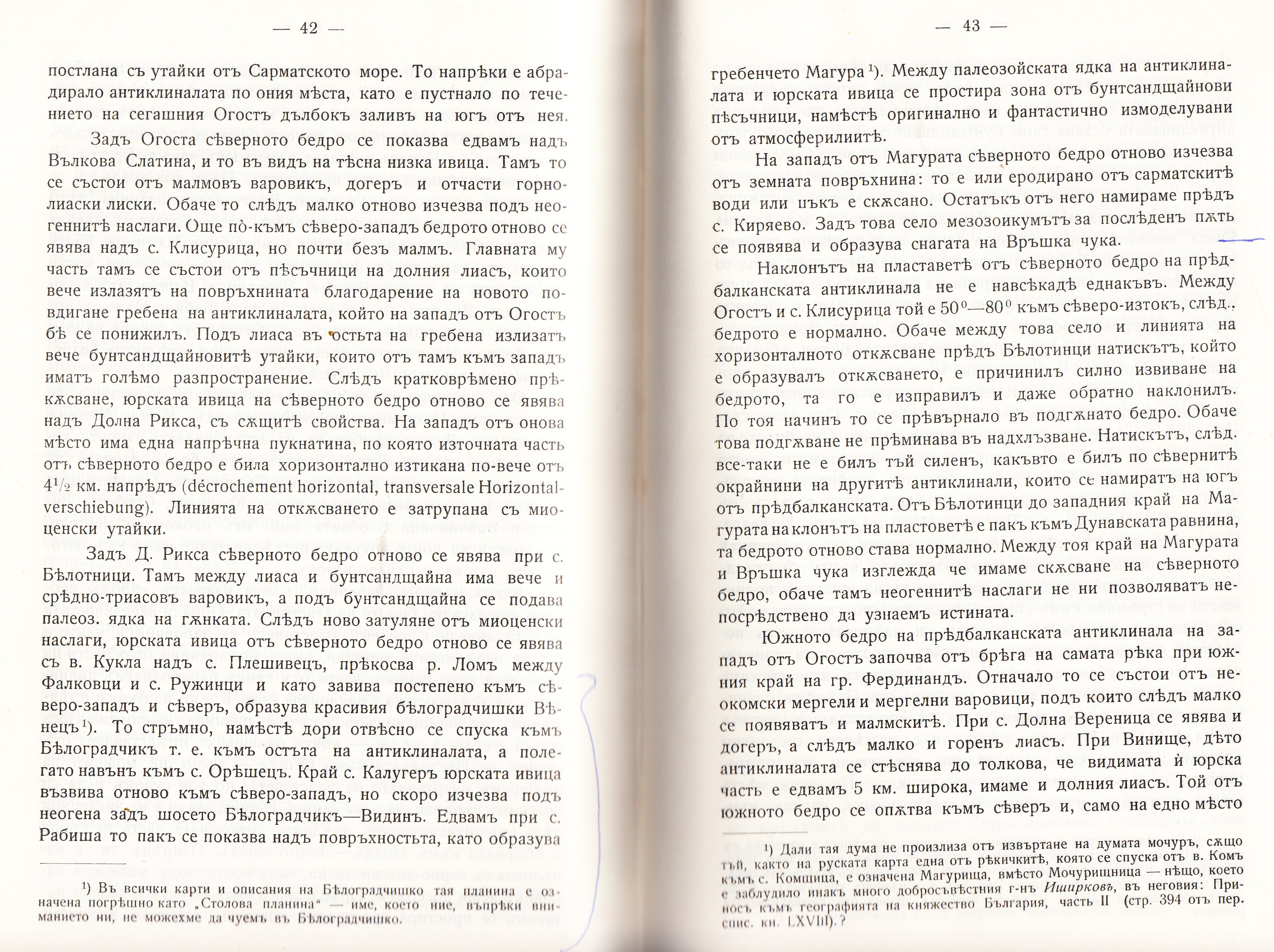 „ Някой част от северното бедро на тая гънка са извити във вид на буквата /S/ : така е например краи Белоградчик между р.Лом и с.Кладоруп…..“