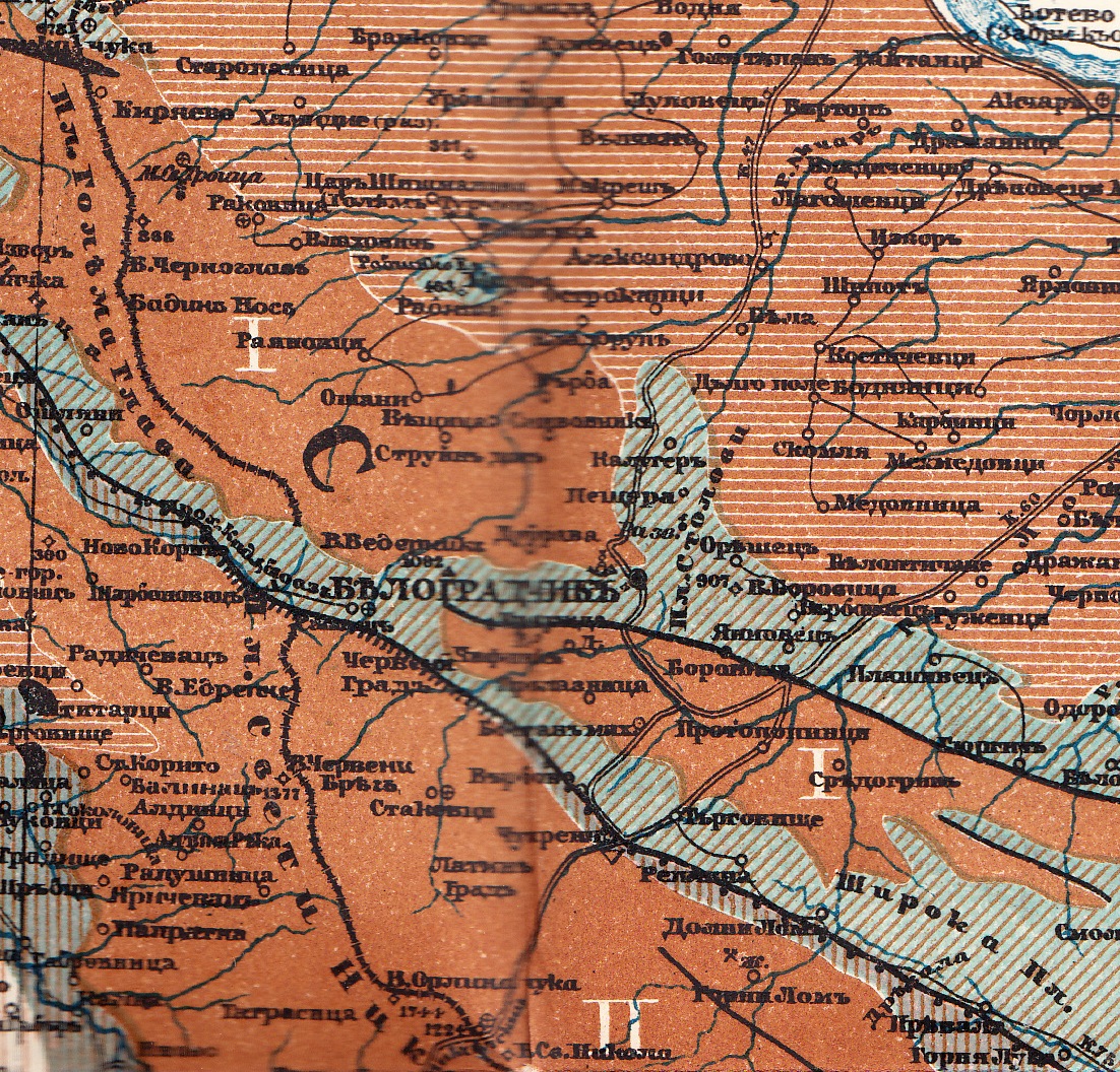 ………..Гнайствата зона, също като и ценоманския варовик на Вислец, се раздвояват на две: едната ивица следи вътрешната окрайнина на северното бедро, което между Белоградчик и с.Острокапци е насочено почти право на север, а другата следи южното през с.Дубрава, насочено на запад….“