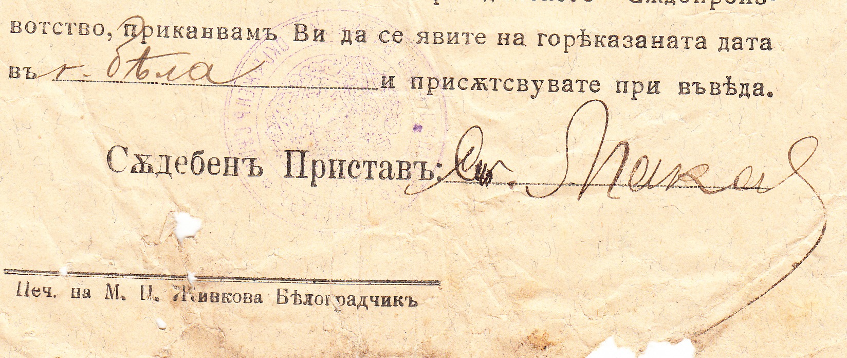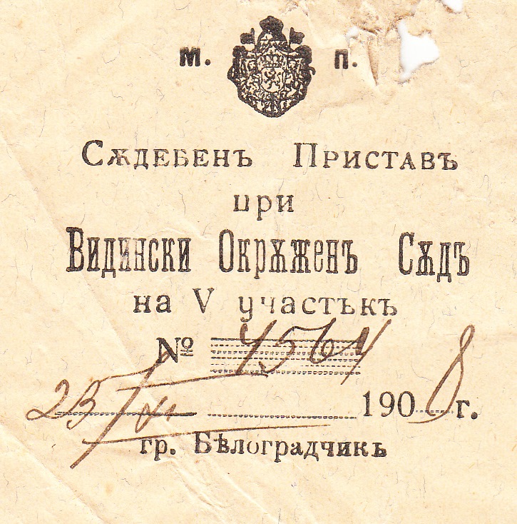 на 5-ти Участък гр.Белоградчик N 4564 / 23.11.1908 год.