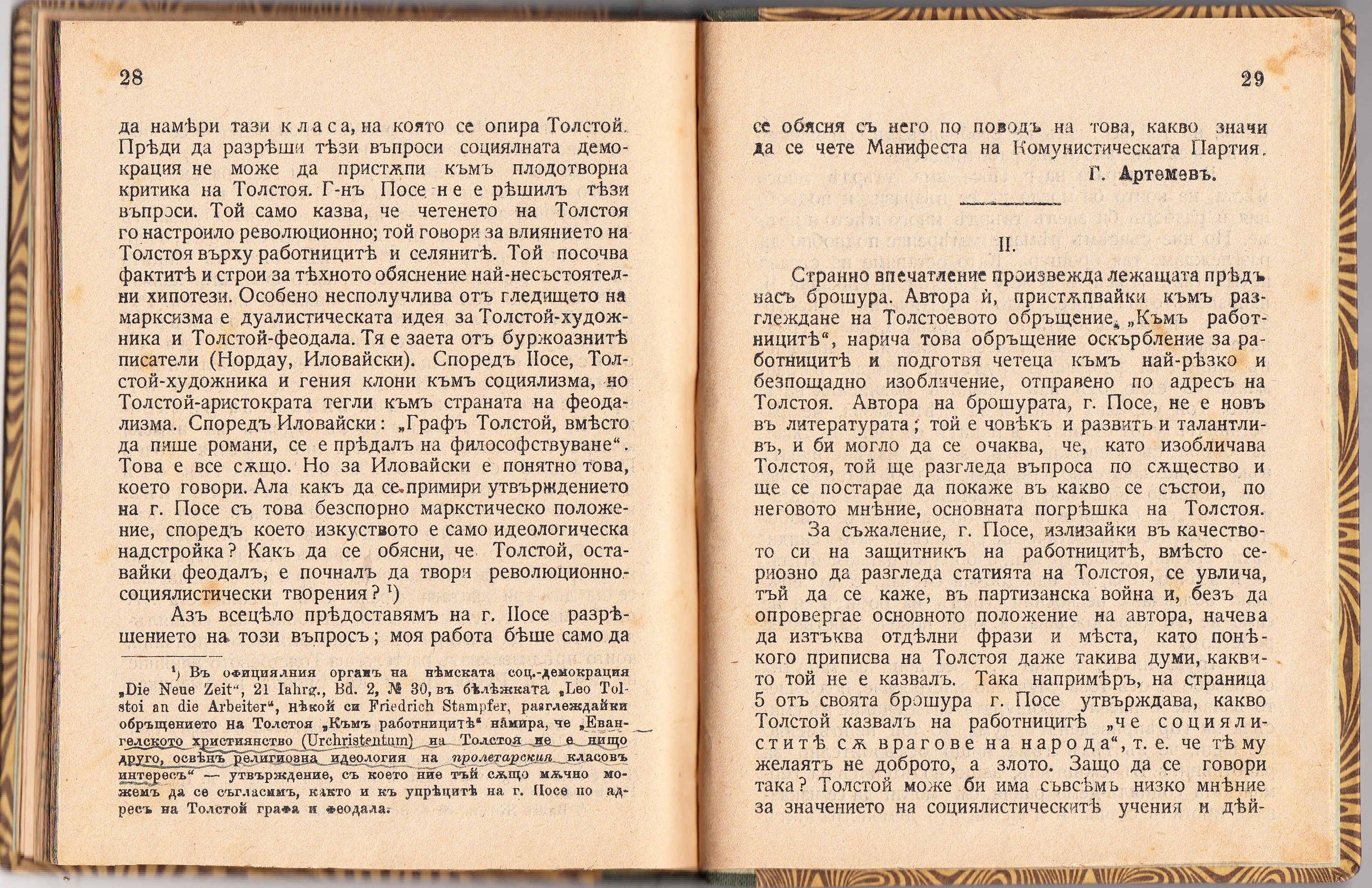 “Отказва да служи през Първата световна война и е задържан във военнопленническия лагер. Той е първият изявен толстоист в България. Издава сп. „Ново слово”. Религиозните книги на Толстой го спират да не се самоубие. Журналист и преводач от руски език. Основател на първата толстоистка комуна в България през 1900 г.“