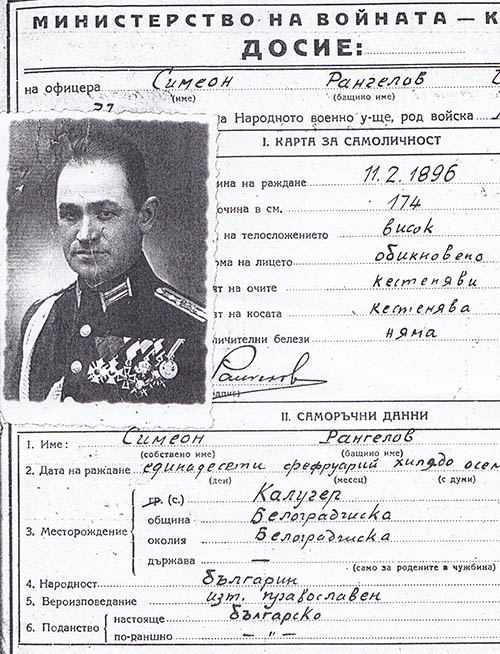До нас достигна копие на досието от Министерство на войната на ген. Симеон Рангелов, завършил „Конструкция на оръжие и бойни припаси“, както и „Висши артилерийски курсове“ в Торино, Италия, с диплом от италианското министерство на войната. Той е един от основните последствени, ликвидиран от ДС.
