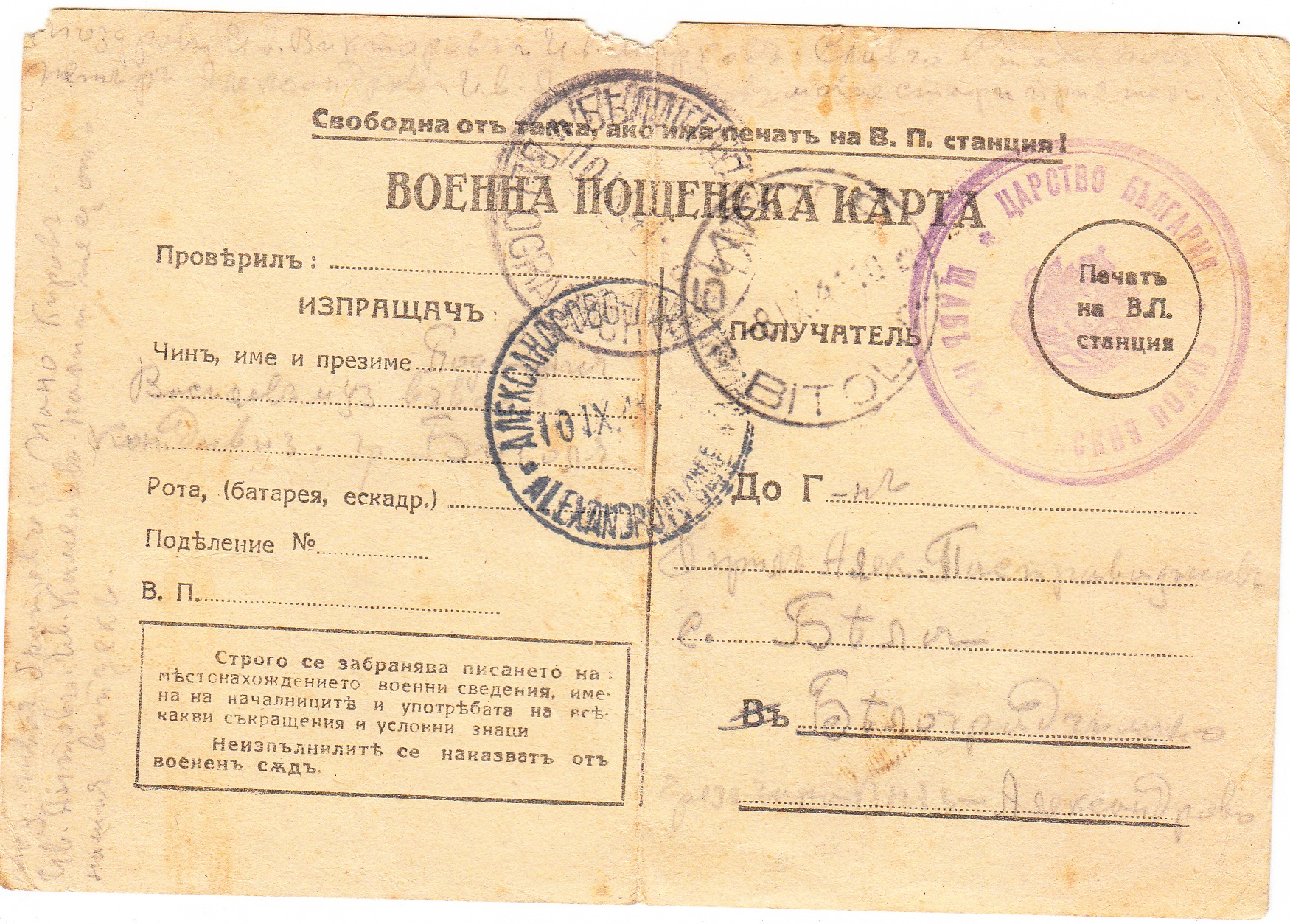 от Подп. Илия Василев, уч. взвод Конната Дивизия гр.Битоля.