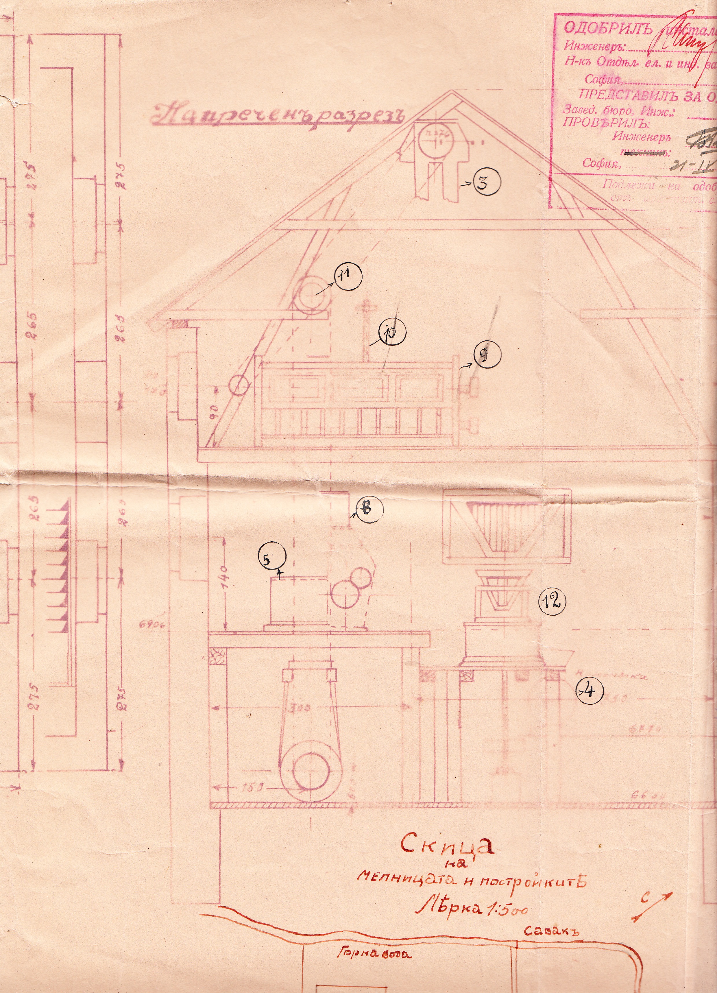 ПРОЕКТ ЗА МЕЛНИЦА НА ГЕРГО ИЛИЕВ, КОЯТО ЩЕ СЕ ПОСТРОИ НА река БЕЛСКА в с.БЕЛА, околия БЕЛОГРАДЧИШКА – МАШ.ТЕХ. МИЛАН А.МАДГЕРОВ зап.N 2611 д.в.бр.116 – 23.08.1930 г.