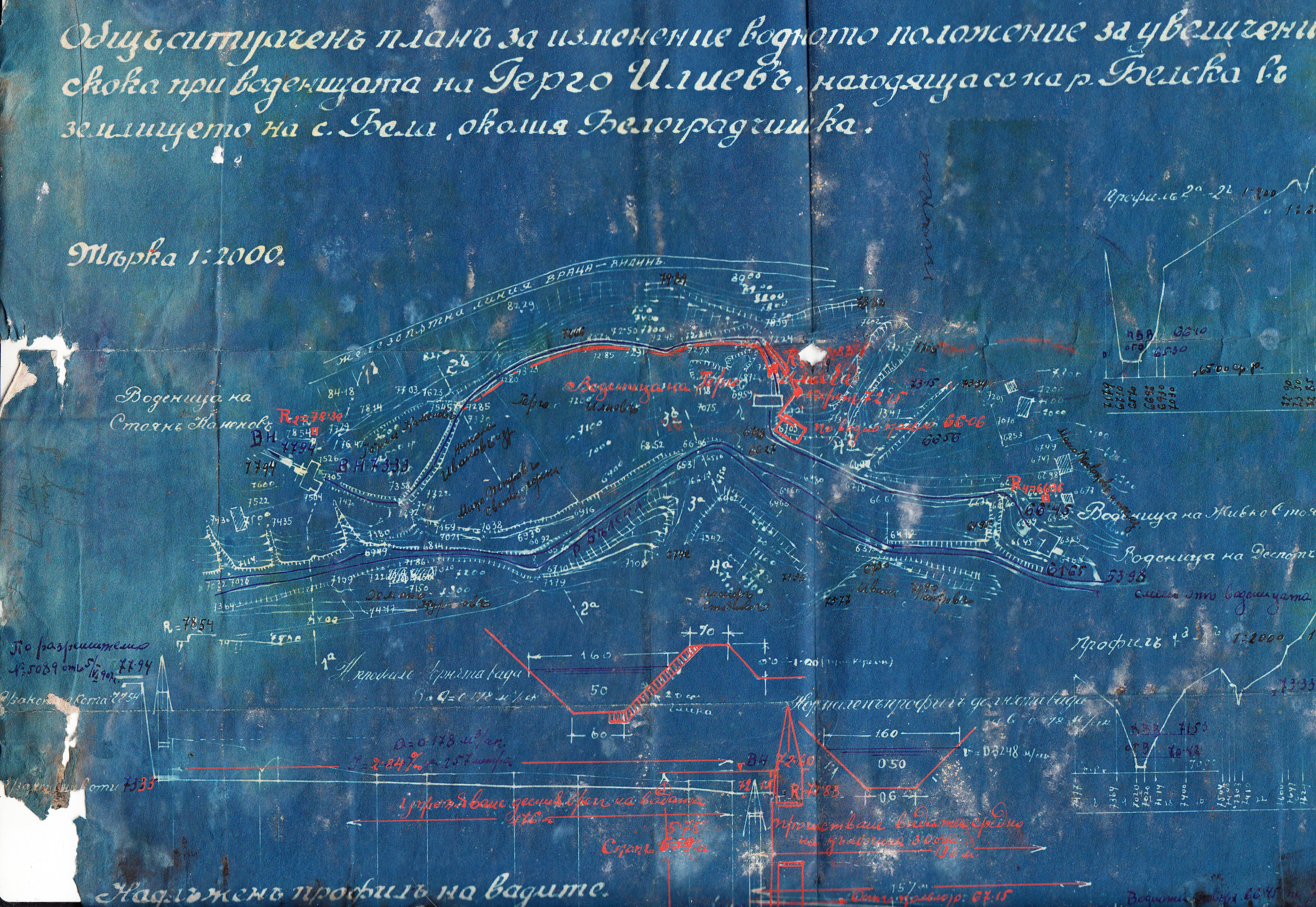 Общ ситуационен план за изменение на водното положение за увеличение на скока при воденицата на Герго Илиев, находяща се на Белската река в землището на село Бела, Белоградчишко.