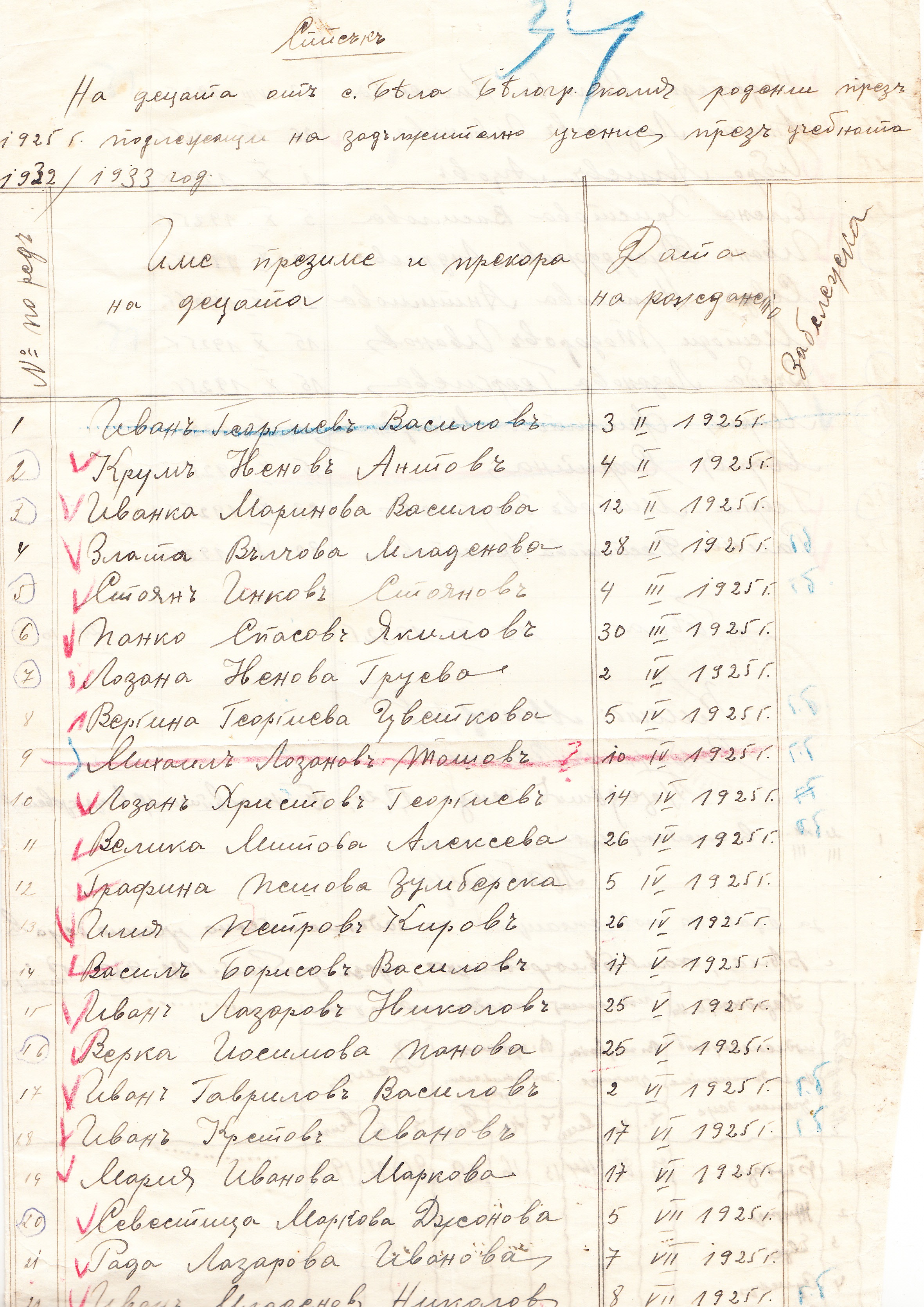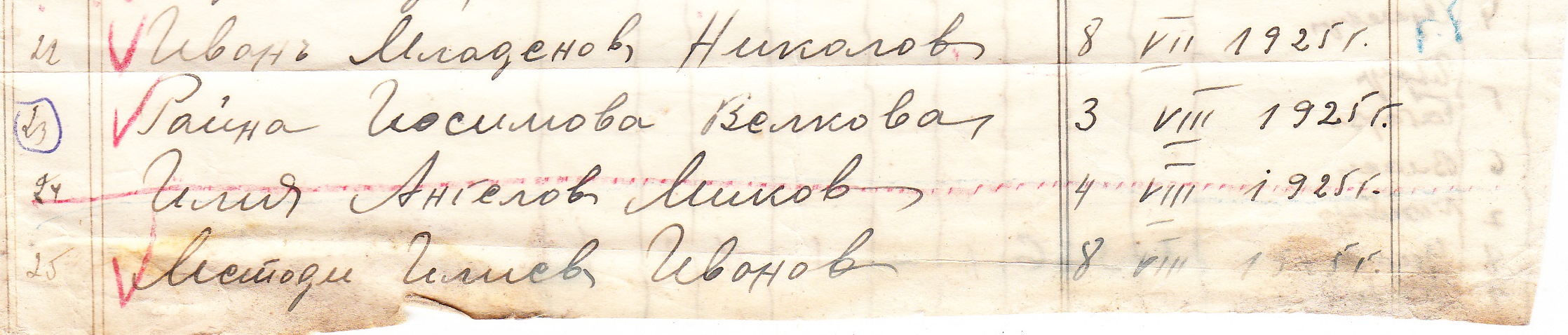 1.Иван Георгиев Василев, 2.Крум Ненов Антов, 3.Иванка Маринова Василева, 4.Злата Вълчева Младенова, 5.Стоян Инков Стоянов, 6.Панко Спасов Якимов, 7.Лозана Ненова Груева, 8.Вергина Георгиева Цветкова, 9.Михаил Лозанов Тошов, 10.Лозан Христов Георгиев, 11.Велика Митова Алексова, 12.Графина Пешева Зумберска, 13.Илия Петров Киров, 14.Васил Борисов Василев, 15.Иван Лазаров Николов, 16.Верка Йосимова Панова, 17.Иван Василев Гаврилов, 18.Иван Кръстев Иванов, 19.Мария Иванова Маркова, 20.Севастица Маркова Джонова, 21.Рада Лазарова Иванова, 22.Иван Младенов Николов, 23.Райна Йосимова Велкова, 24.Илия Ангелов Миков, 25.Методи Илиев Иванов, 26.Надежда Велкова Каменова, 27.Анто Лазаров Иванов, 28.Ибро Алиев Ацов, 29.Елена Христова Василева, 30.Иван Джурджов Андреев, 31.Севда Николова Антимова, 32.Методи Тодоров Иванов, 33.Върба Лозанова Георгиева, 34.Мария Филипова Младенова, 35.Мария Софийна, 36.Георги Митов Георгиев, 37.Райна Деспотова Христова.