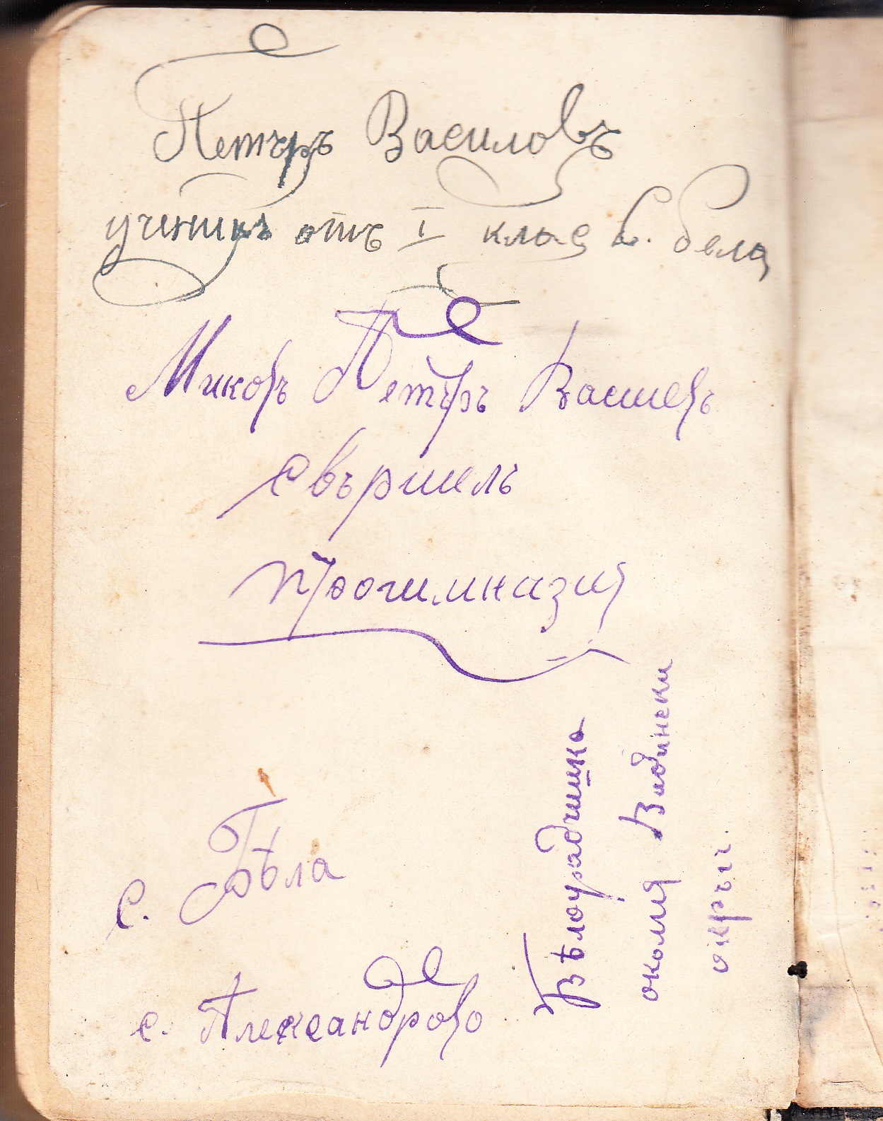 Евангелие на ученика Петър Василев от село Бела, ученик от 1-ви клас.