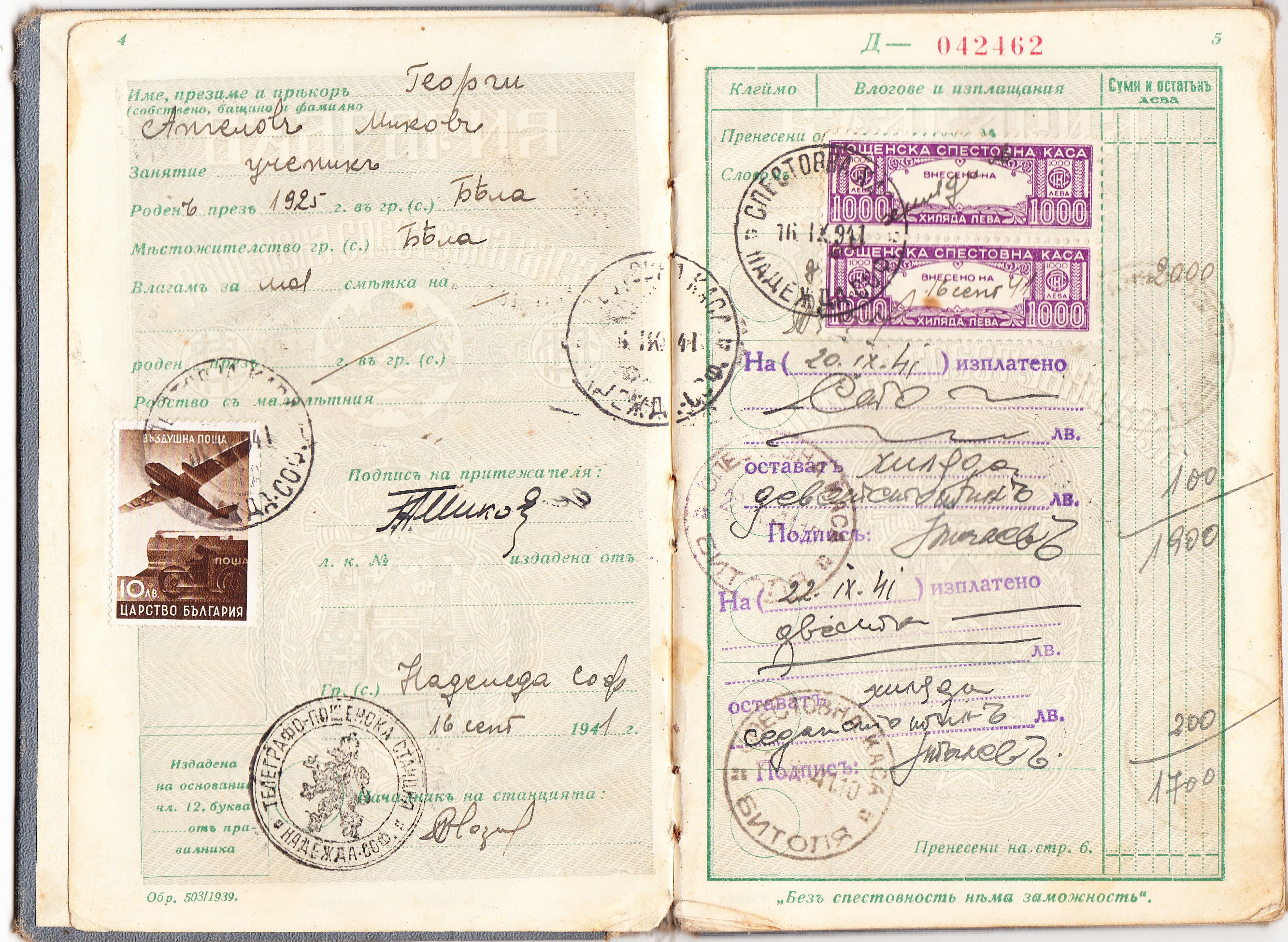 Спестовна книжка- печат каса Битоля – ползвана от Георги: