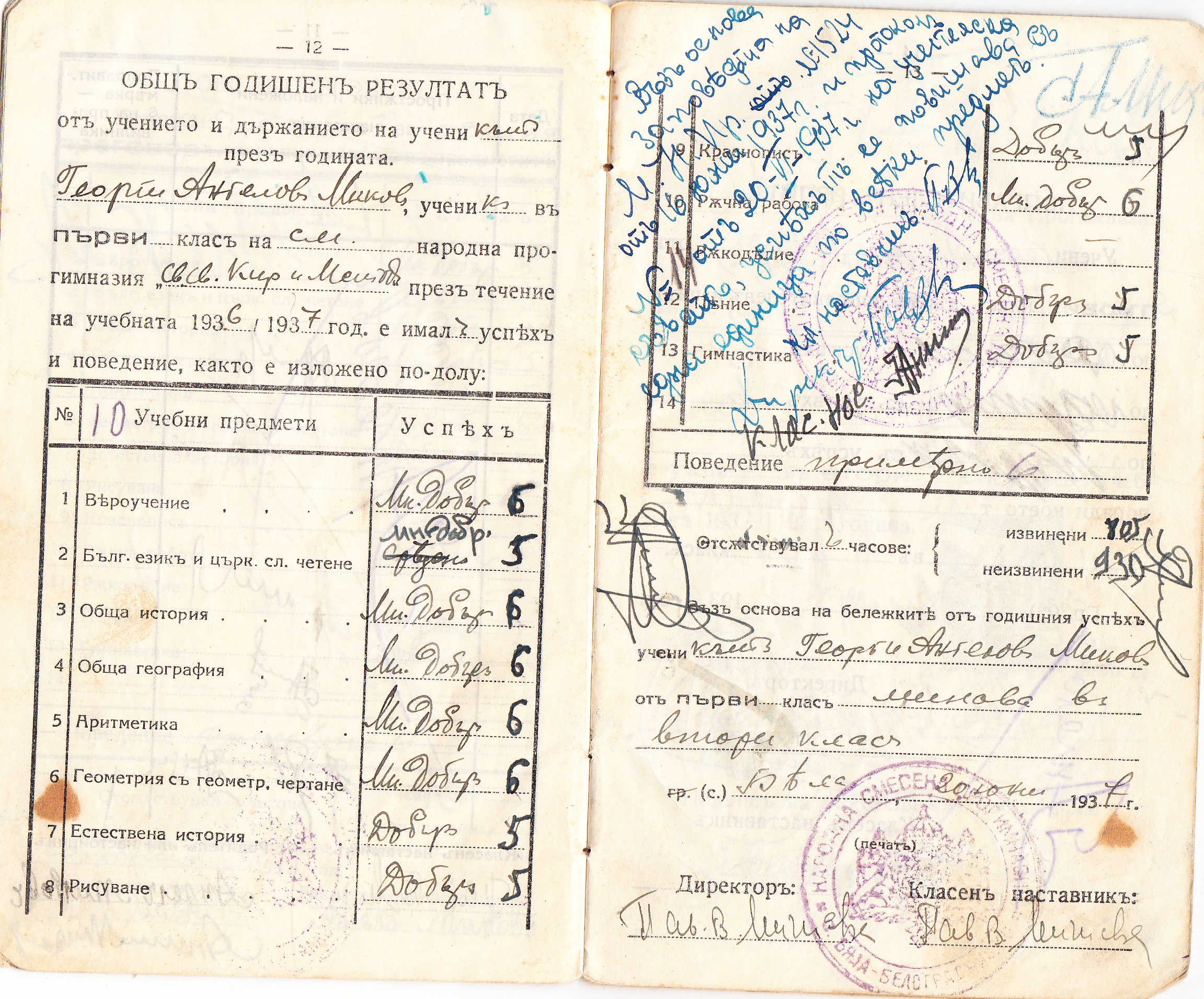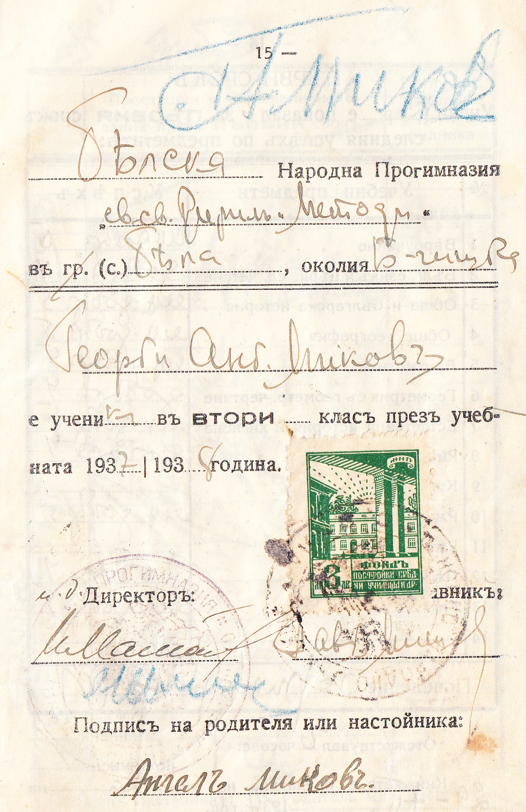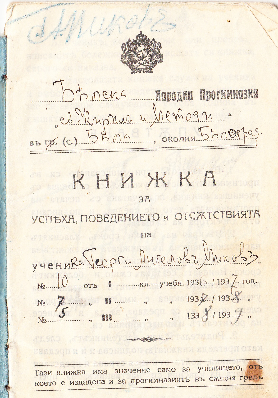 Ученическата книжка на Георги Ангелов Миков