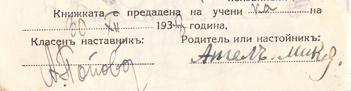 1938/39 год. класен наставник е Ангелина Попова, а 1939 г. /П/ ………….