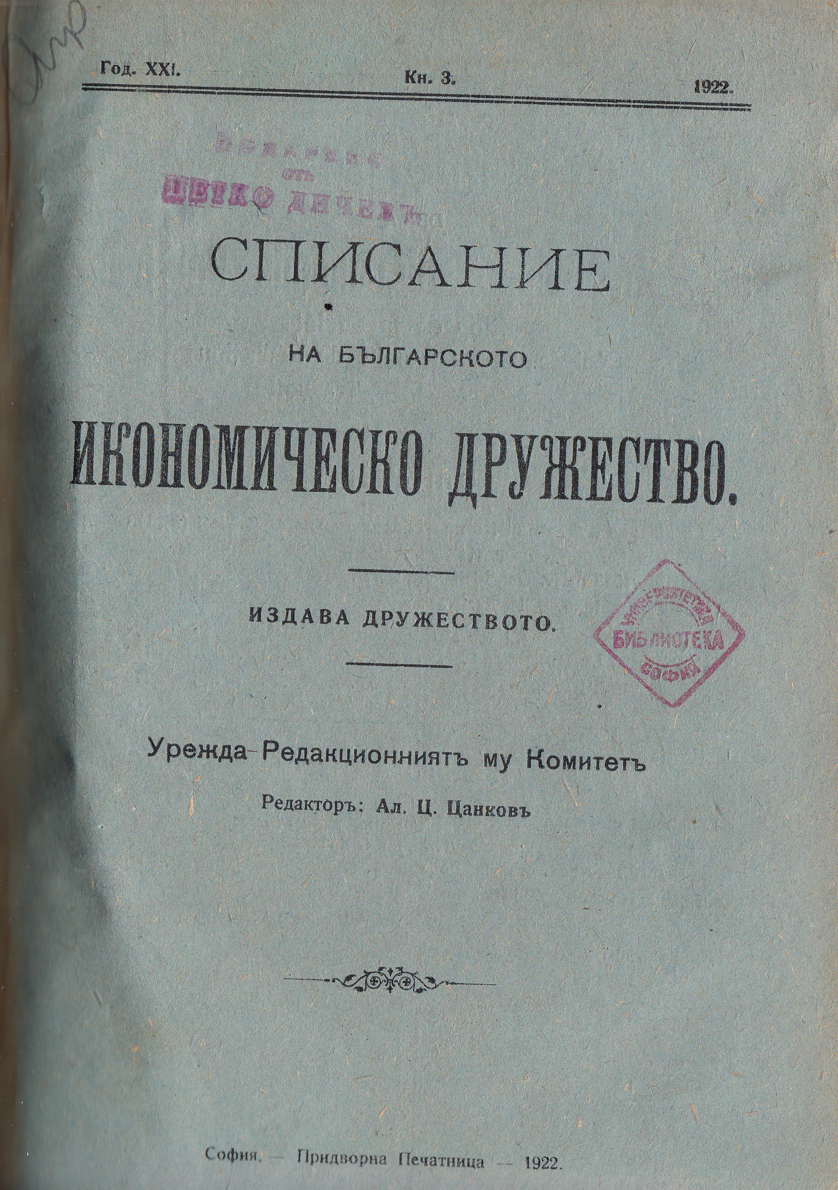 Списание на Българското Икономическо Дружество 1922 год. Година XXI , кн.3