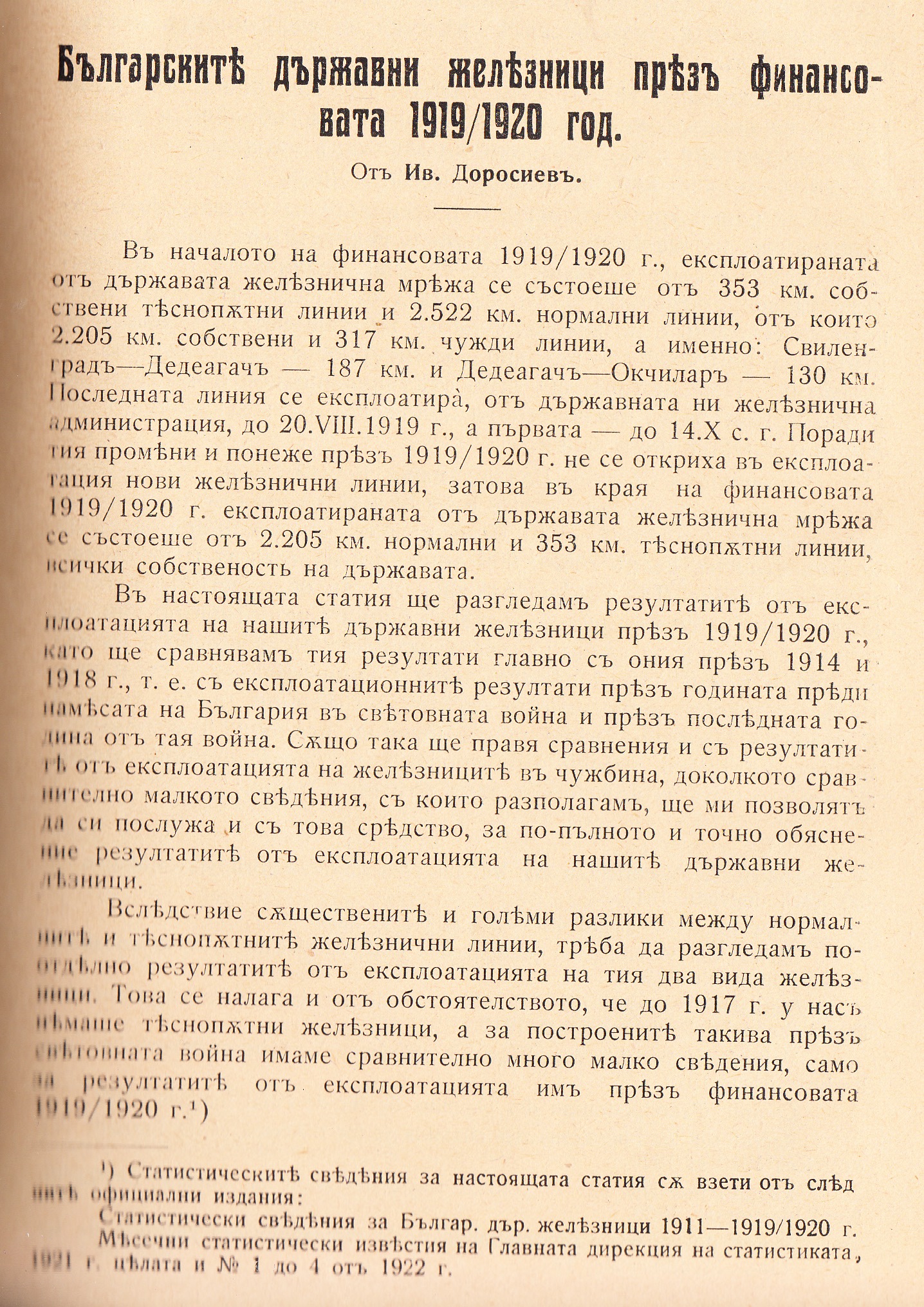 „ Българските Държавни Железници през финансовата 1919/20. година.“
