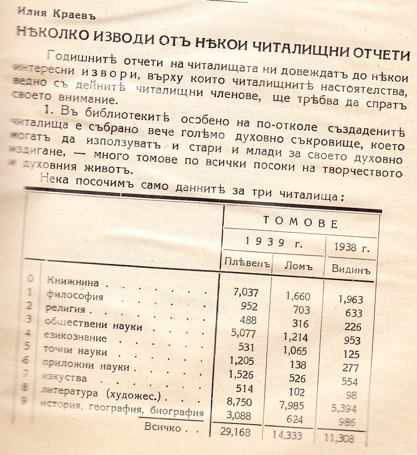 „ Някой изводи от някой читалищни отчети“ – Илия Краев