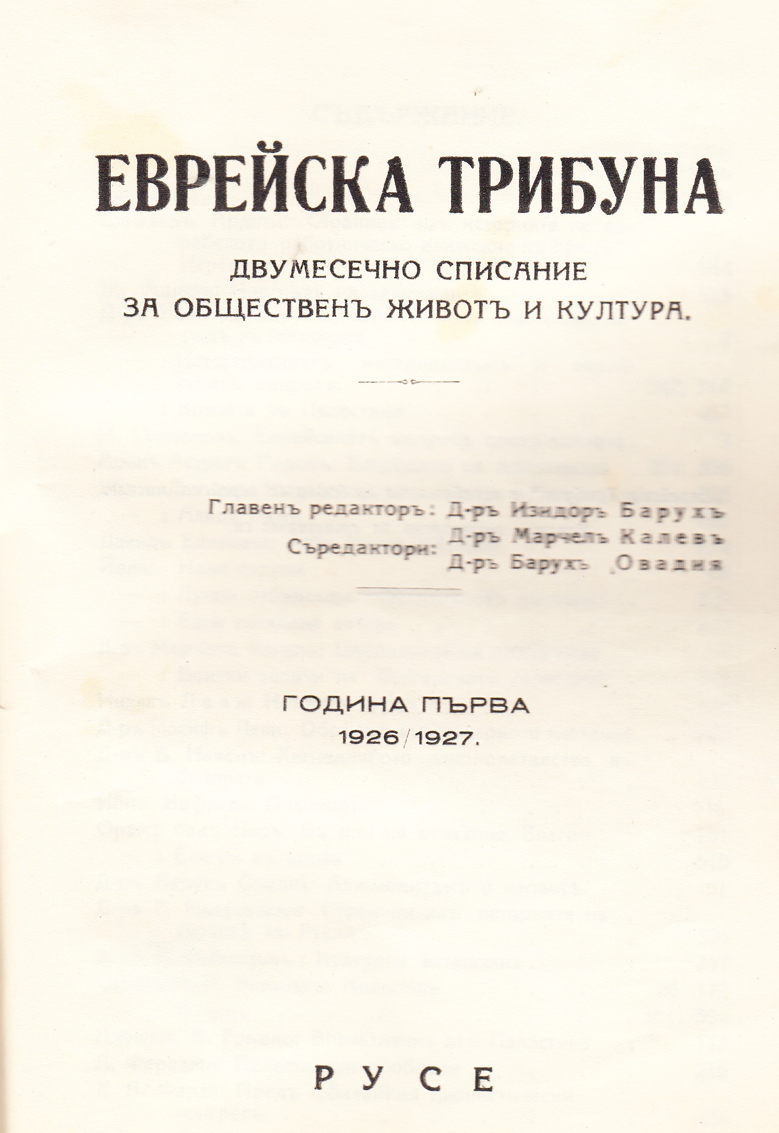Списание Еврейска Трибуна – Русе, 1926/27 година.