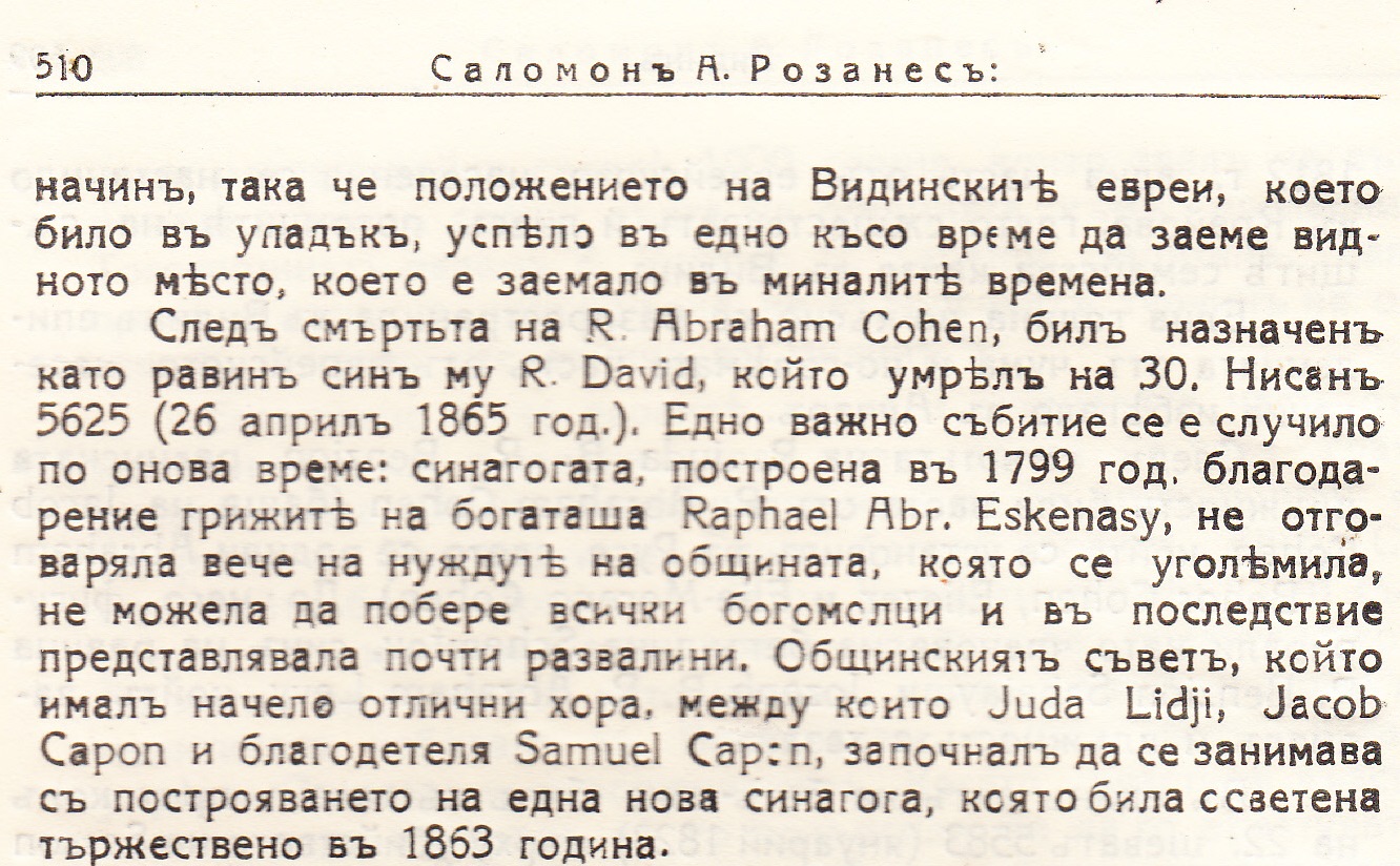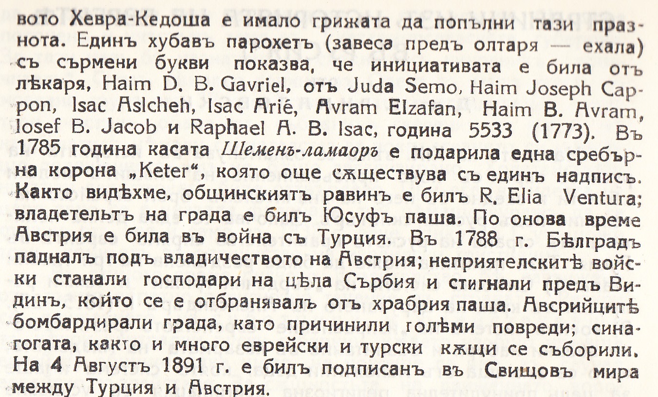 Общинския съвет , който имал начело отлични хора, мегду които: Juda Lidji , Jacob Capon и благодетеля Samuel Capon.