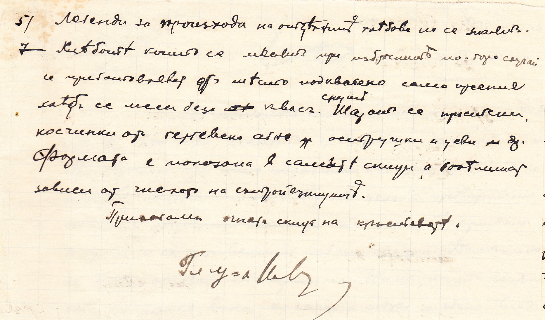 6./7. Хлябът който се меси при изброените по горе случай се приготовлява от тесто подквасено, само пресния хляб се меси без квас. Хлябът се пресича с костичка от гергевско агне, ..остружки, цеви и др. Формата е показана в самата скица, а големината зависи от числото на сътрапезниците.