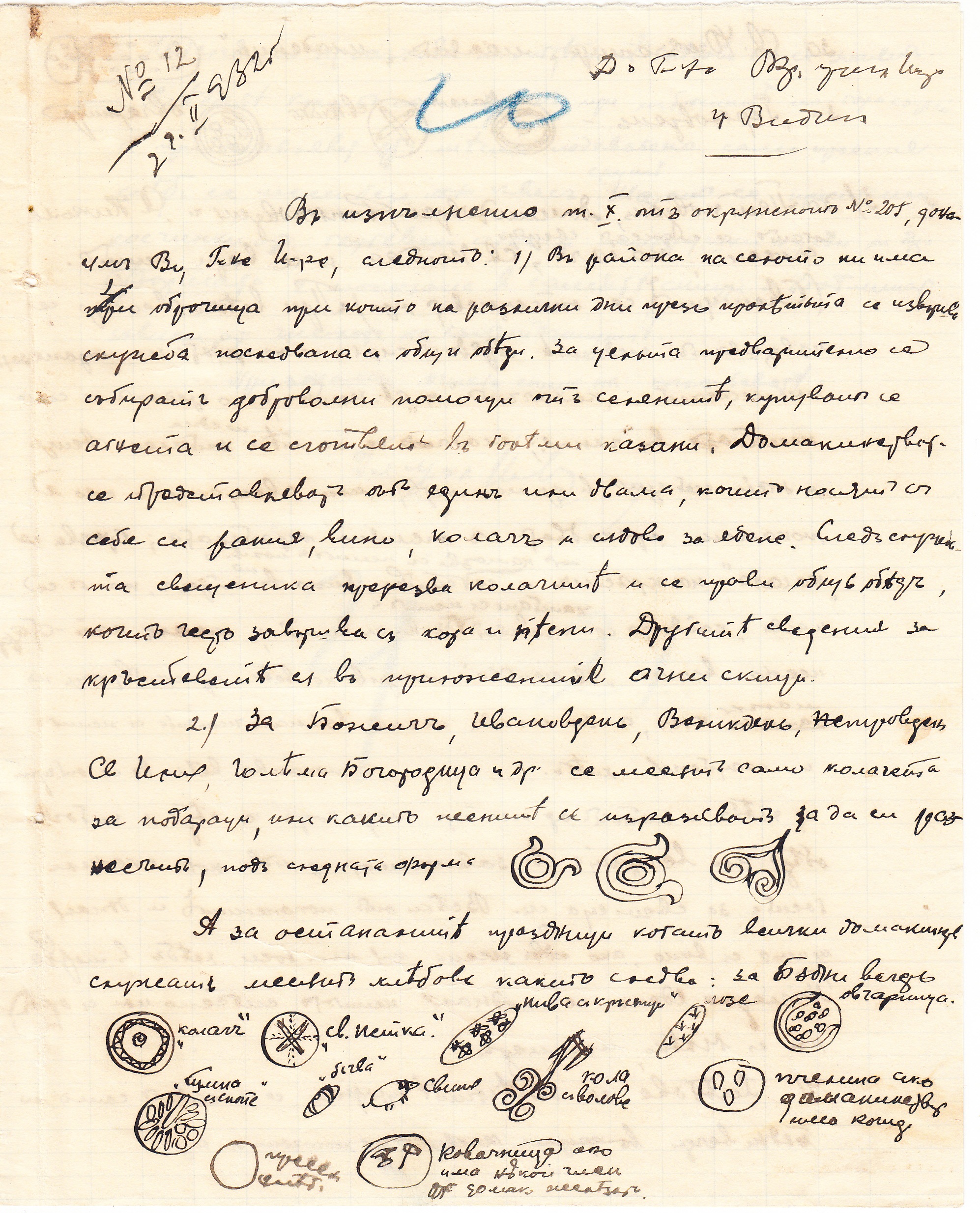 За Божич, Ивановден, Великден, Петровден, Свети Илия, Голема Богородица и др. се месят само колачите за подаръци, или както местните се изразяват , „ да си разнесат“ под следните форми……………………. А за останалите празници, когато всички домакинства украсяват местните хлябове както следва: