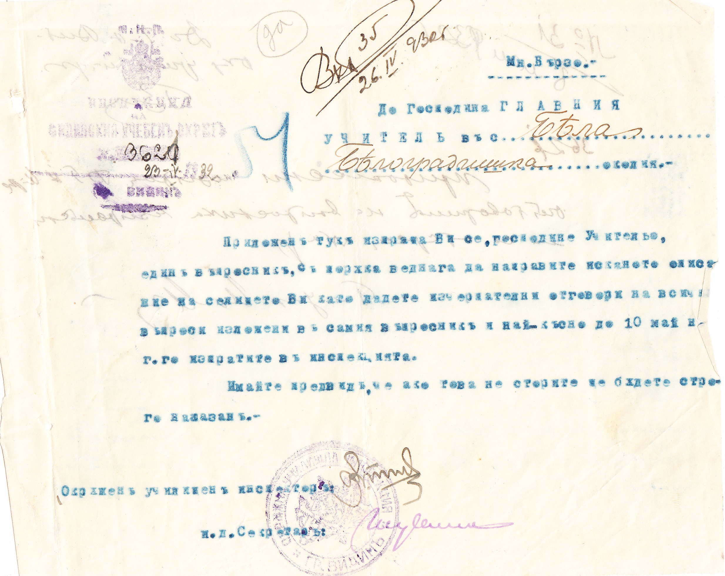 В изпълнение на т.X от окръжно N 205 донасям Ви Господин инспекторе следното: