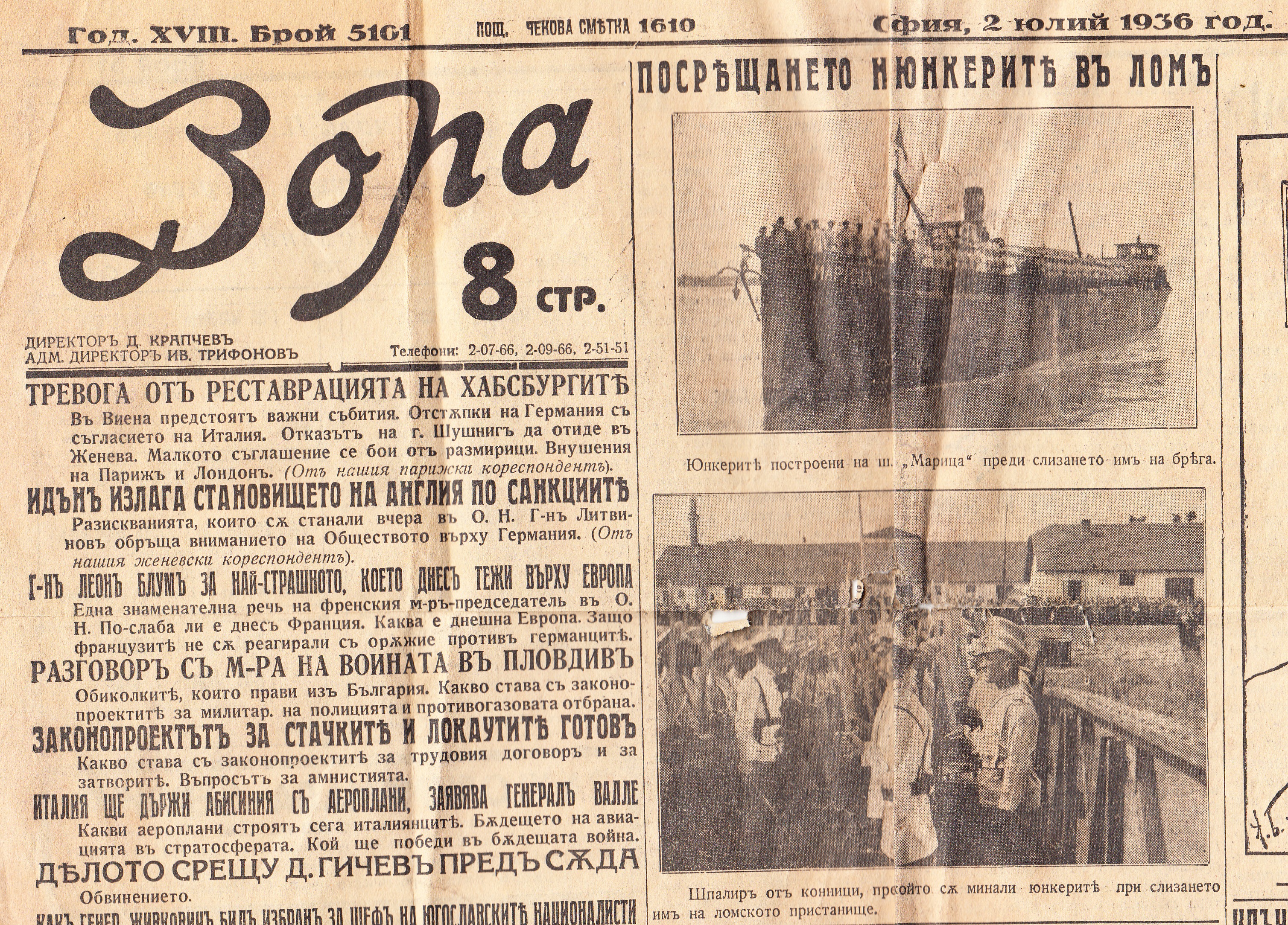 Вестник „ЗОРА“ от 2 Юлий 1936 година.