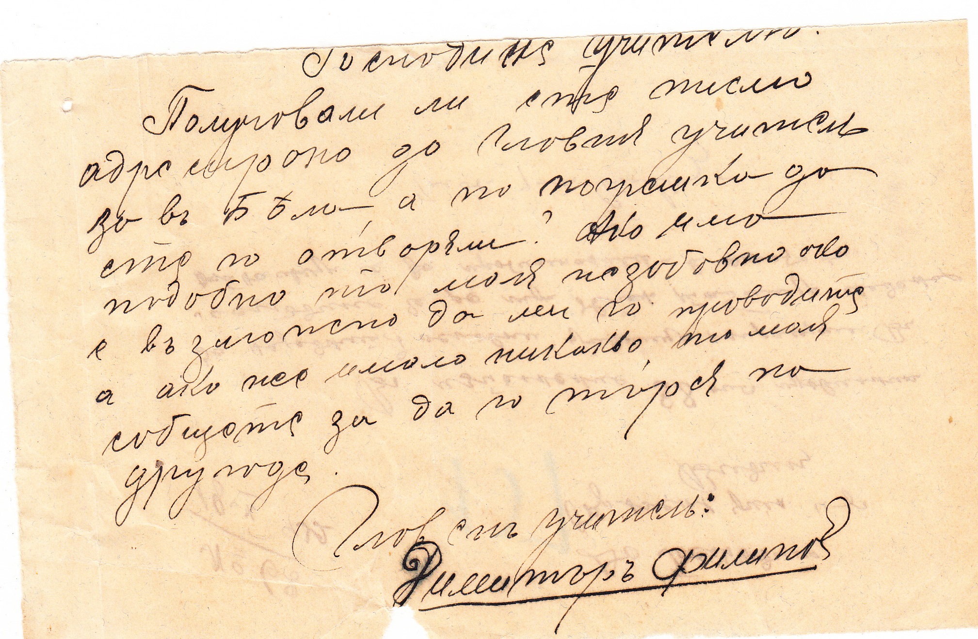 Един документ остнал случайно подписан от Главния учител Димитър Филипов.