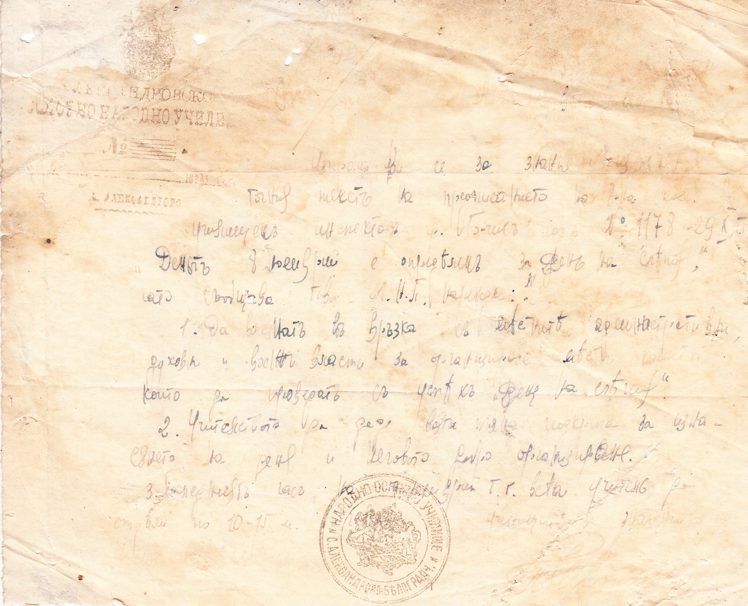 Документ от – 08 Ноември 1935 година, относно честване „Деня на слепия“