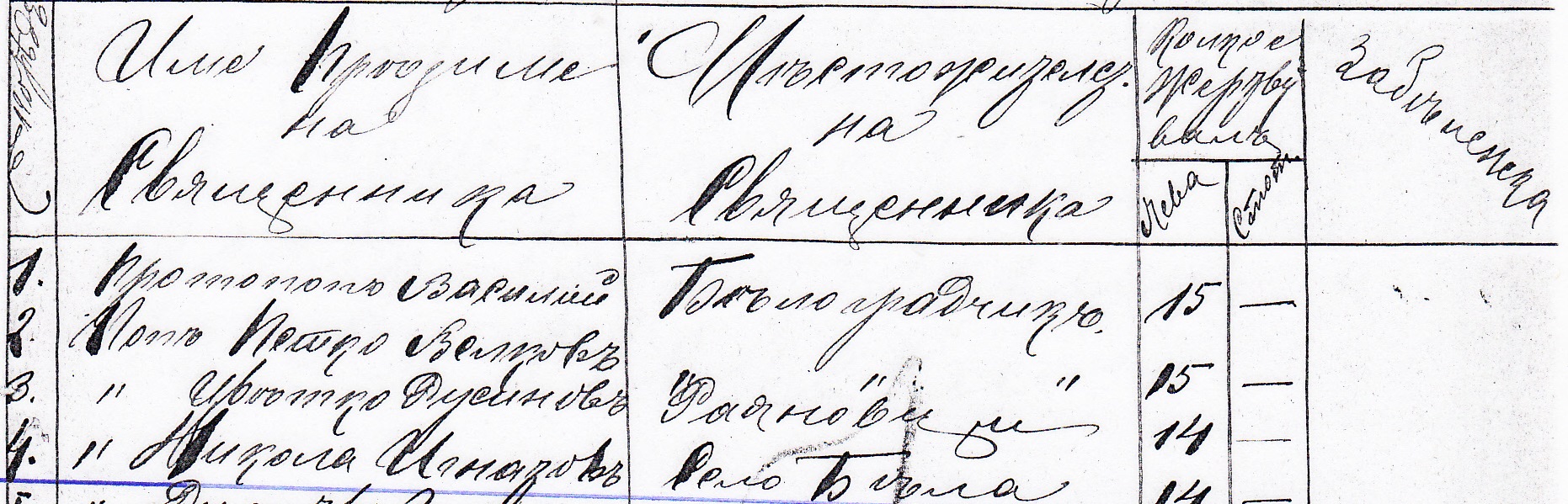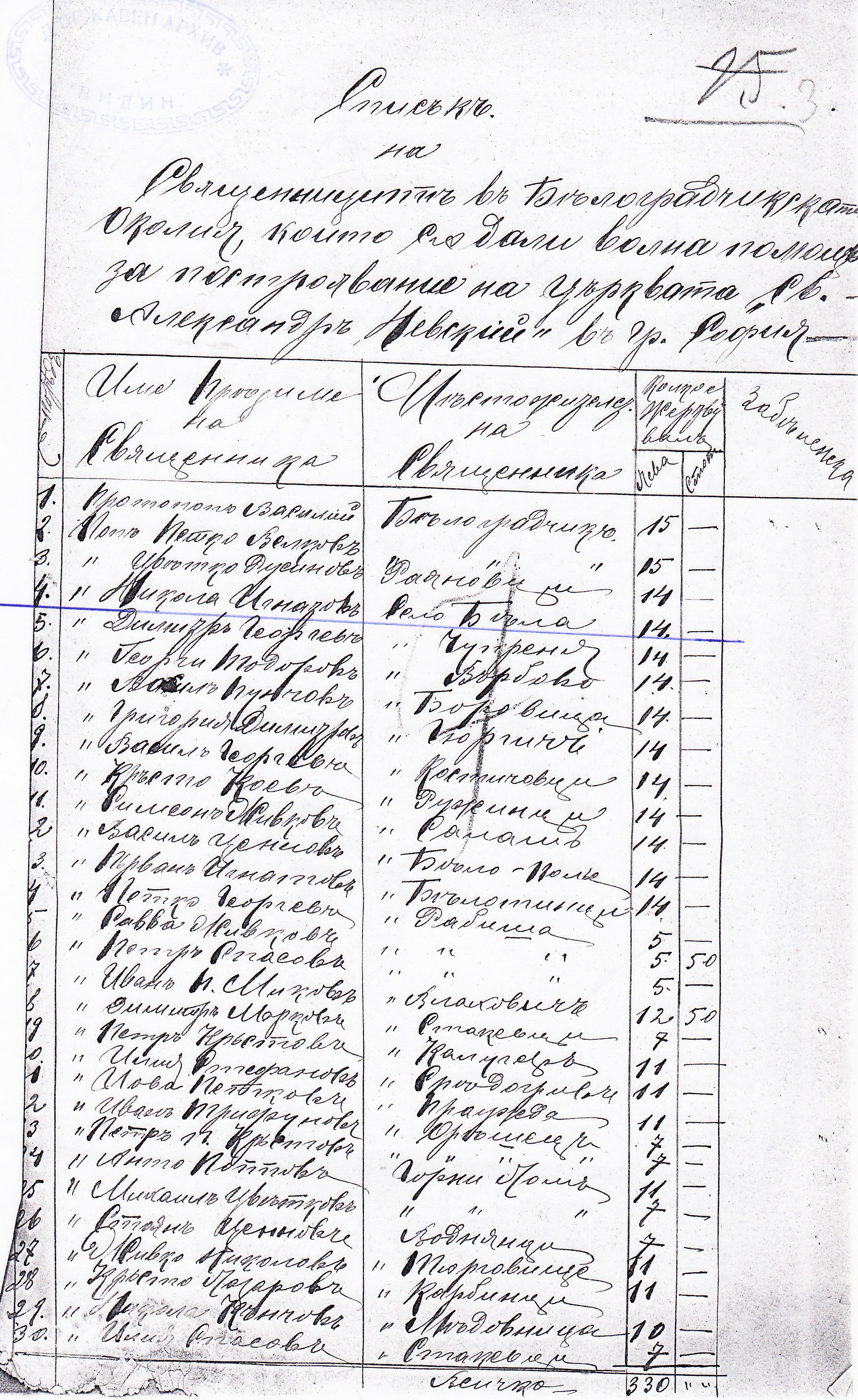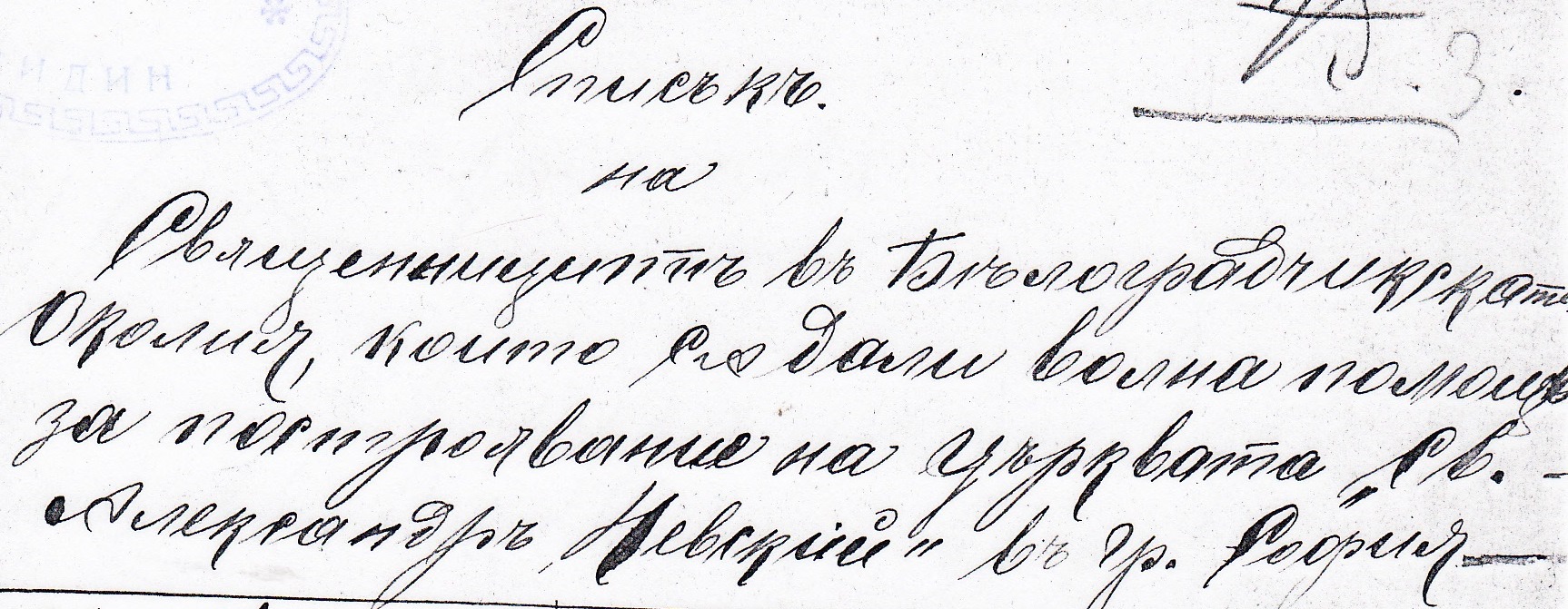 Списък на Свещениците от Белоградчишката околия, които са дали волни помощи за построявание на църквата Св. Александър Невски в гр. София