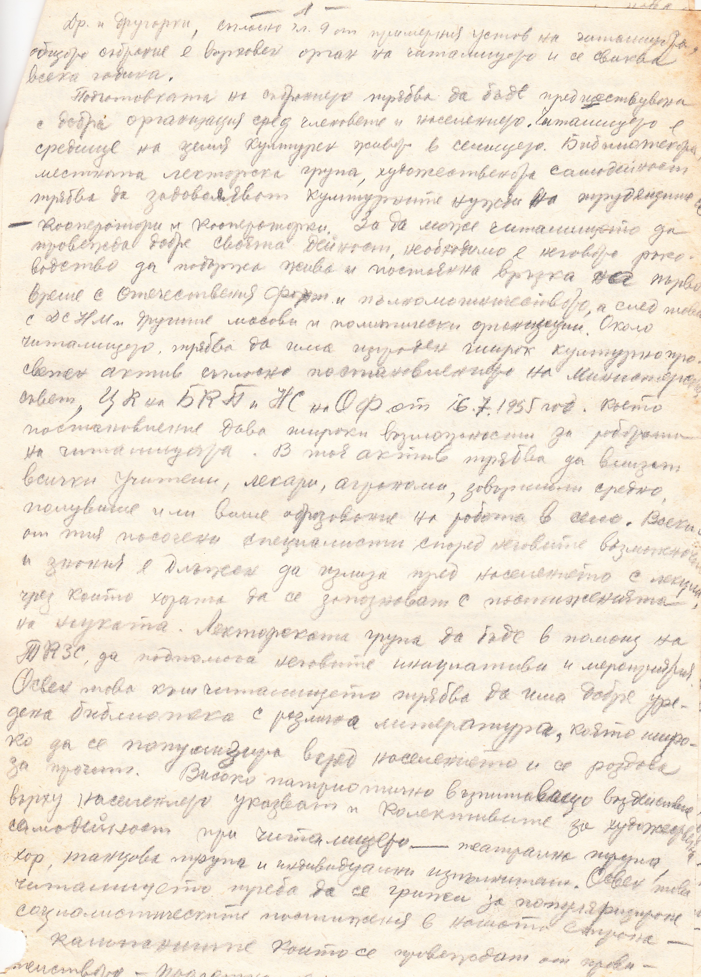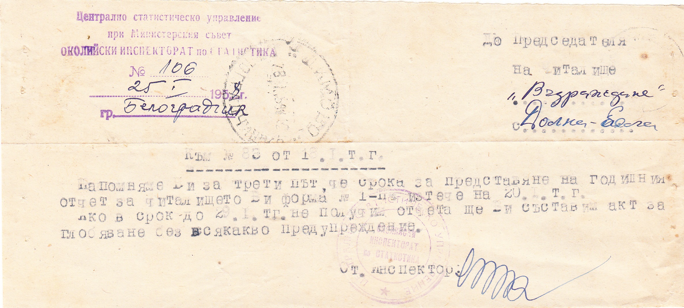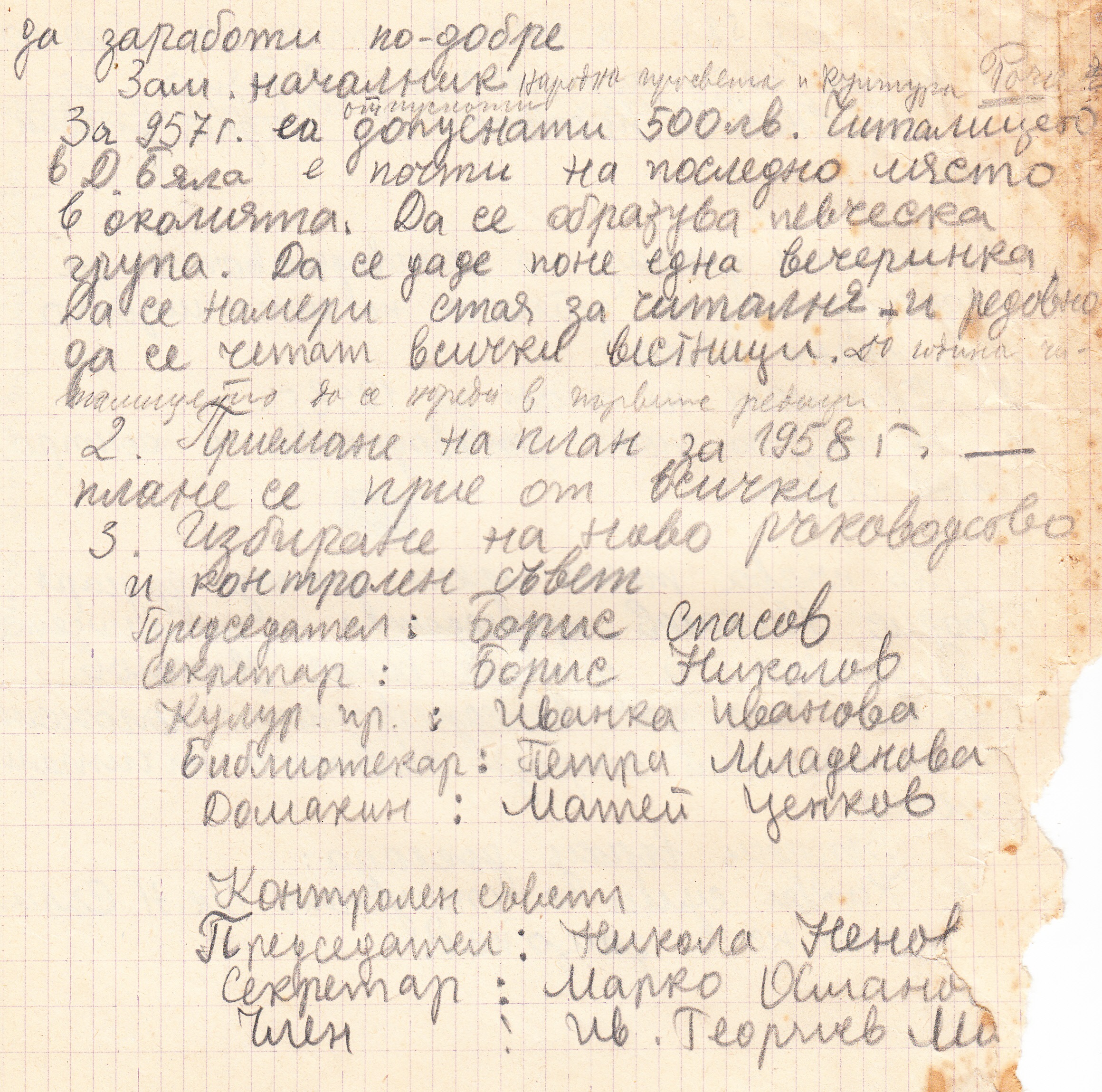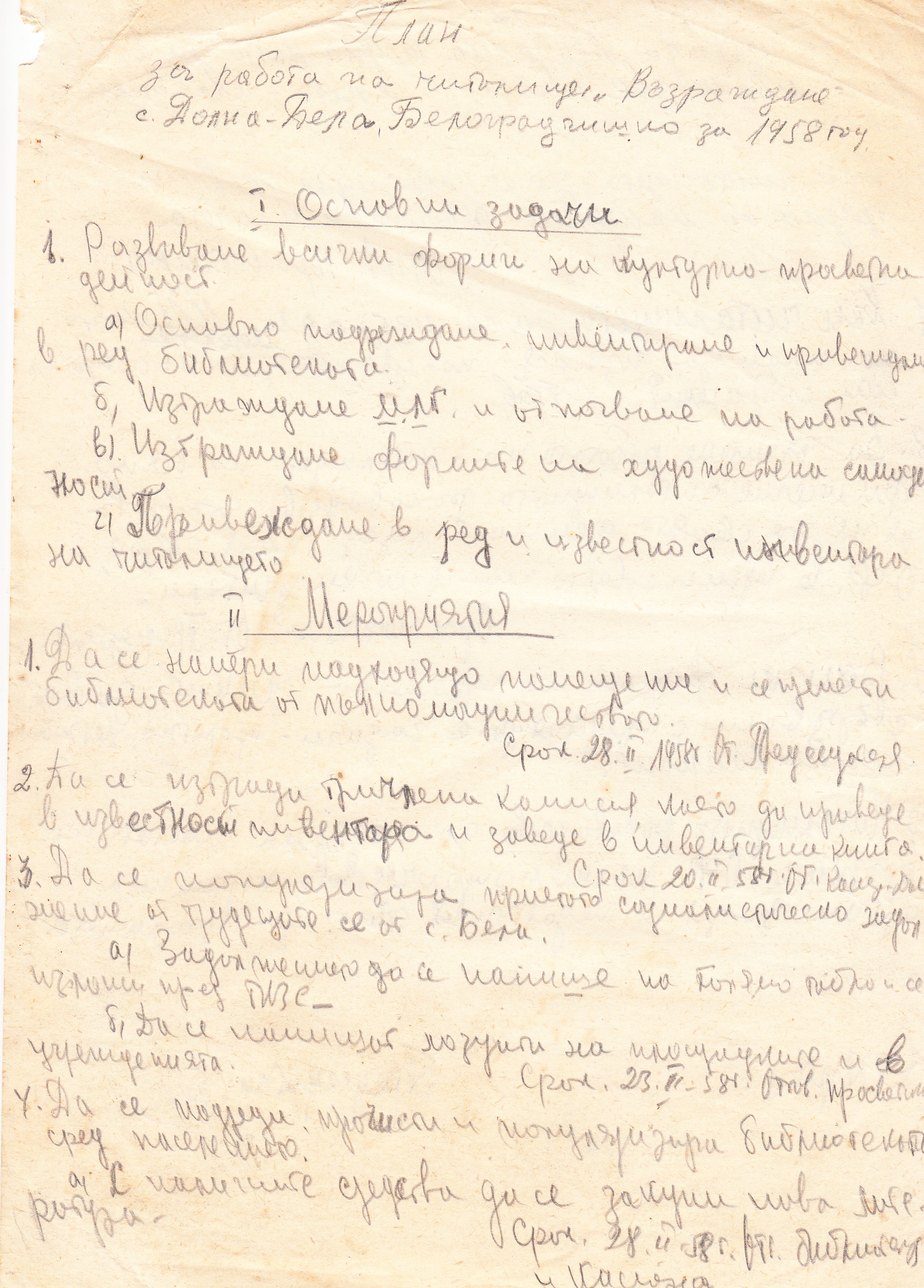 Днес 06.02.1958 година се проведе отчетно изборно събрание на читалището в село Долна Бела.